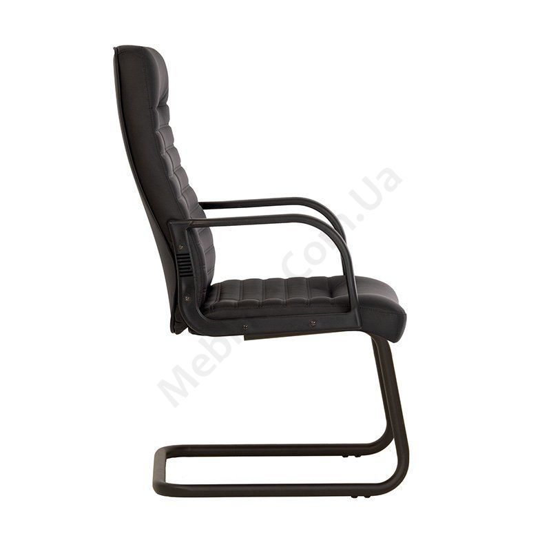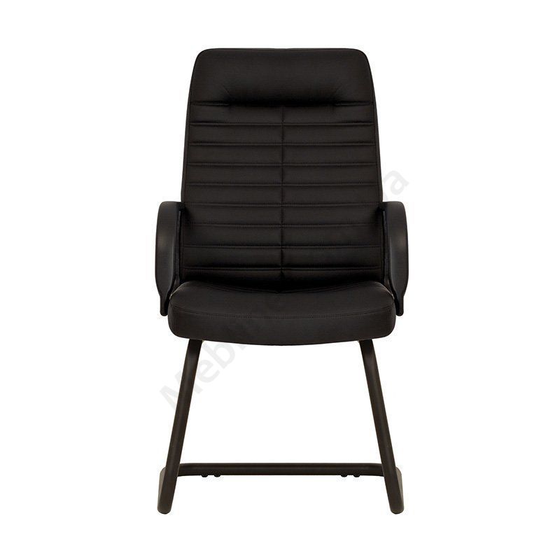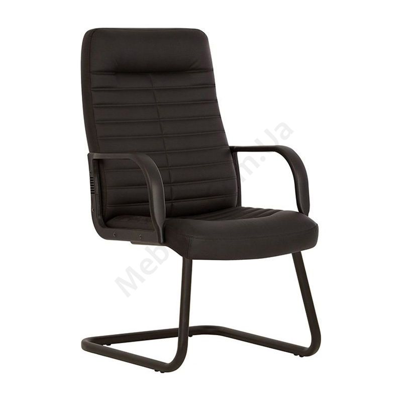 Крісло для конференцій з горизонтальною прошивкою, покращеною ергономікою, пластиковими підлокітниками, на металевій основі.