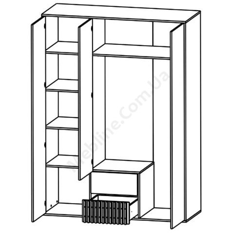 - За двома дверцятами штанга для одягу та верхня полиця.