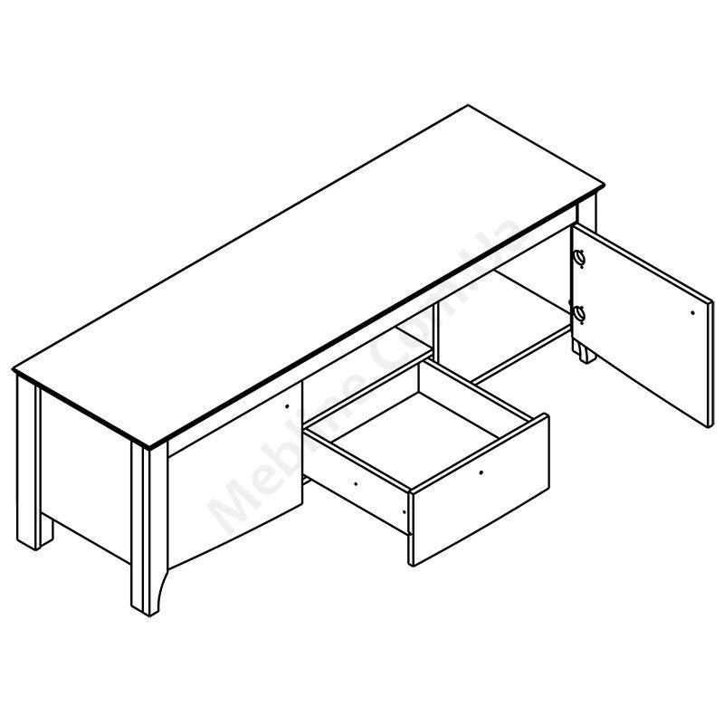 Тумба під телевізор з дверцятами, шухлядою та відкритою полицею.