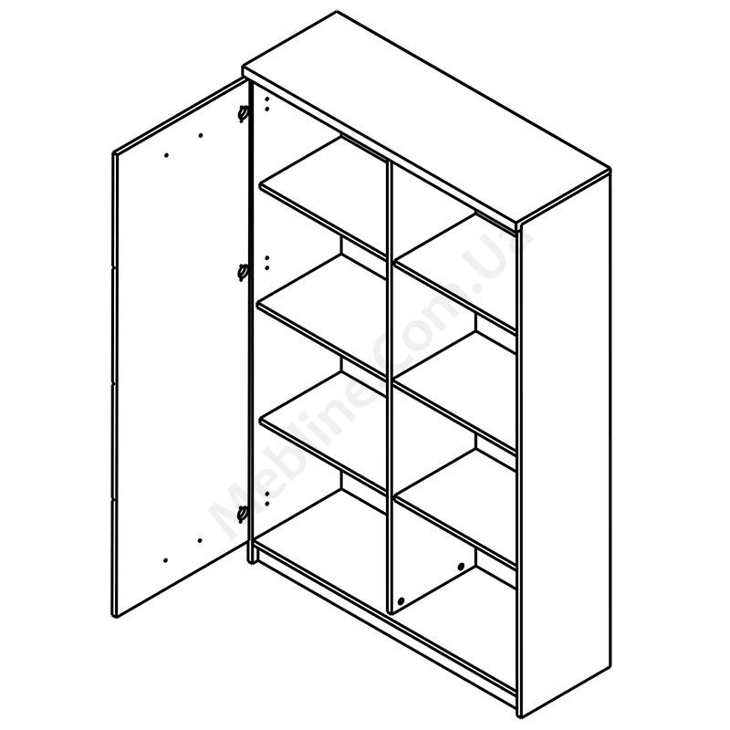 Шафа з відкритими поличками та дверцятами.