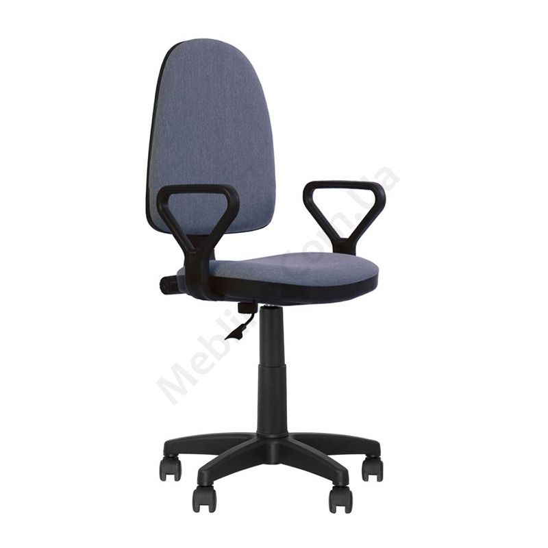 Стандартне операторське крісло з підлокітниками, ручним регулюванням, на пластиковій основі.
