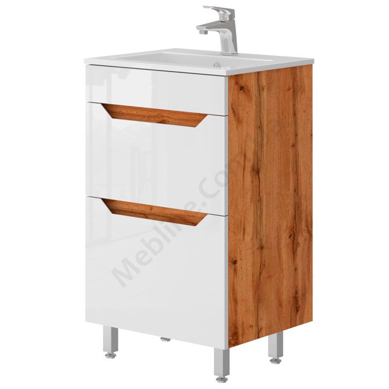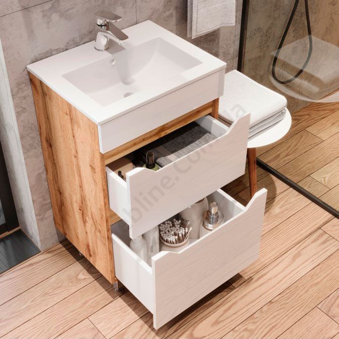 Тумба для ванної на ніжках з умивальником та висувними шухлядами.