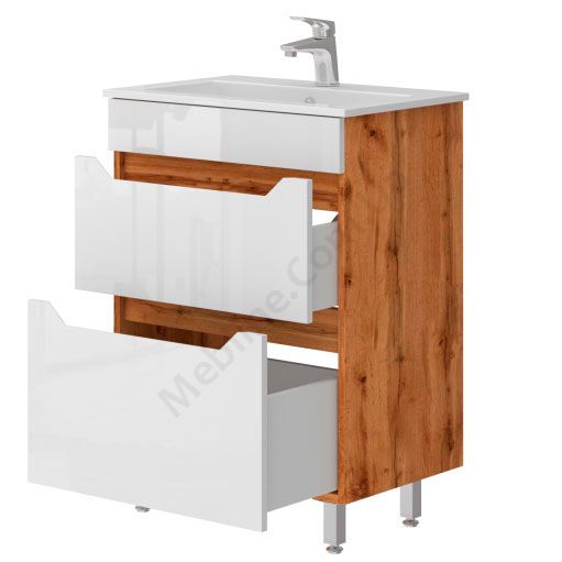 Тумба для ванної на ніжках з умивальником та висувними шухлядами.