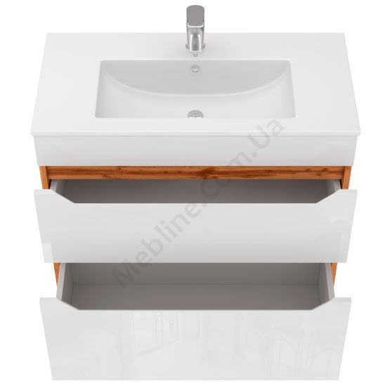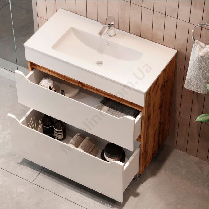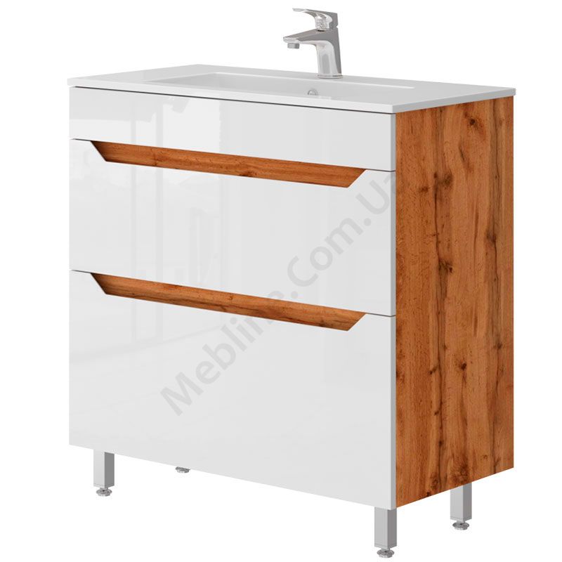 Тумба для ванної на ніжках з умивальником та висувними шухлядами.