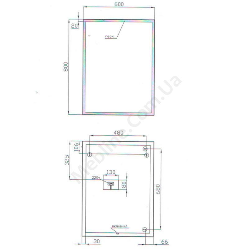 Прямокутне дзеркало для ванної кімнати з підсвічуванням.