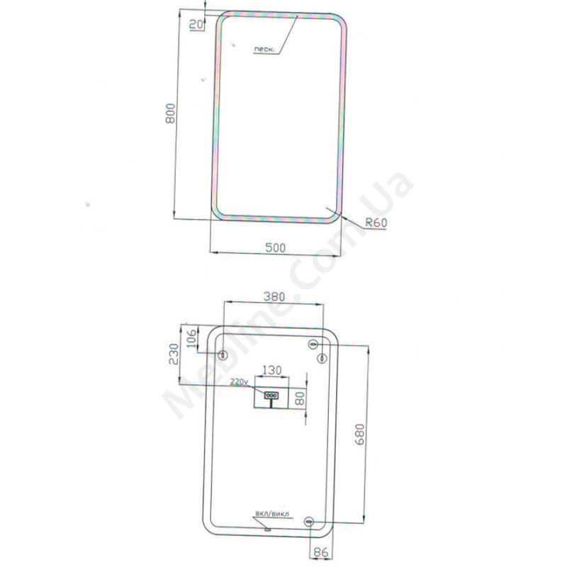 Прямокутне дзеркало для ванної кімнати з підсвічуванням.