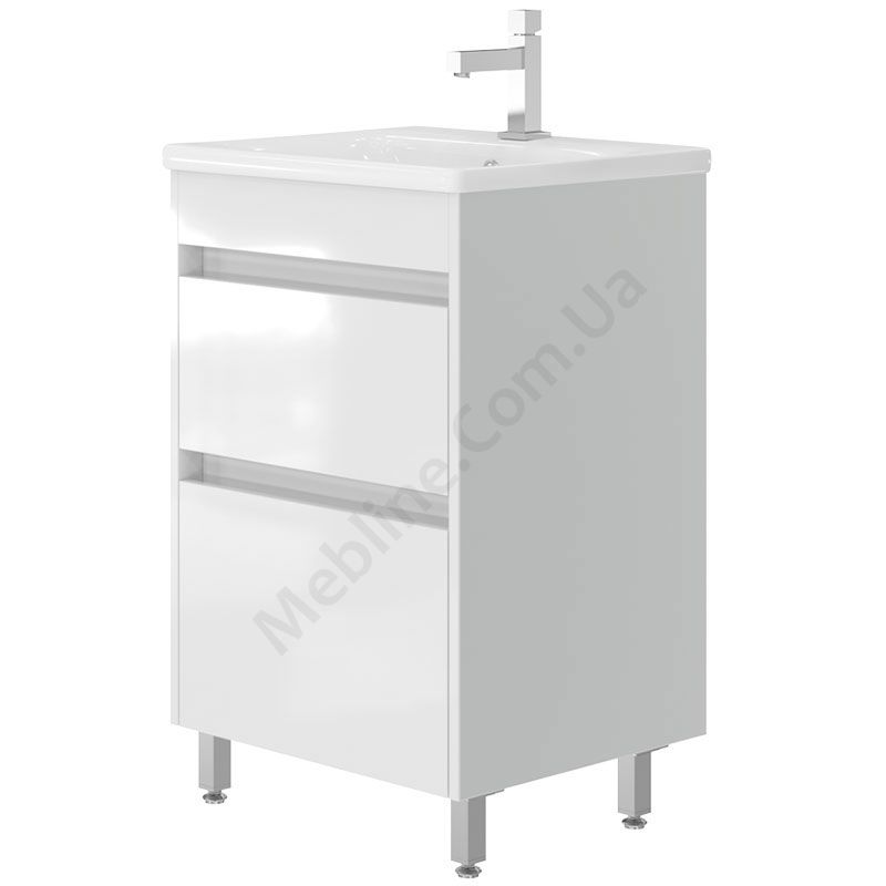 Тумба для ванної на ніжках з умивальником та висувними шухлядами.