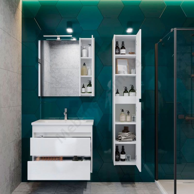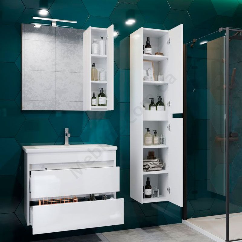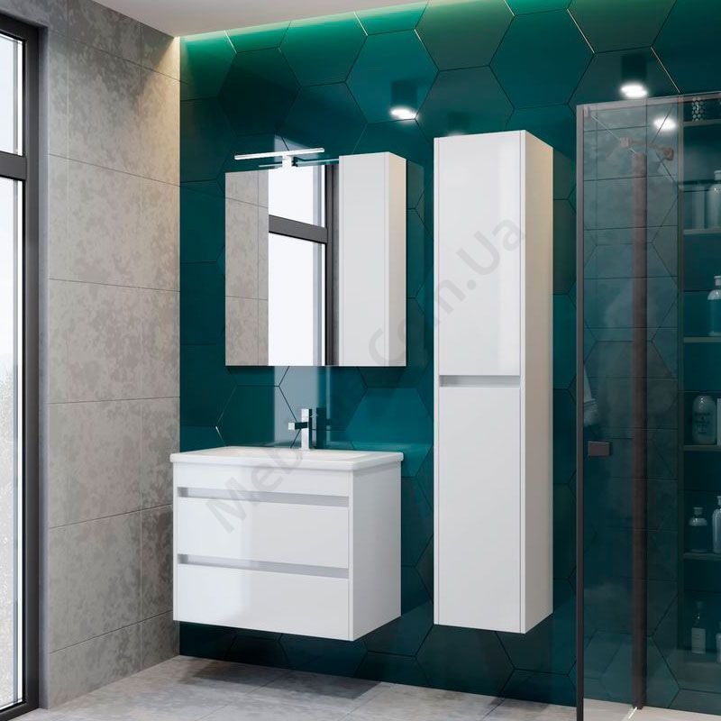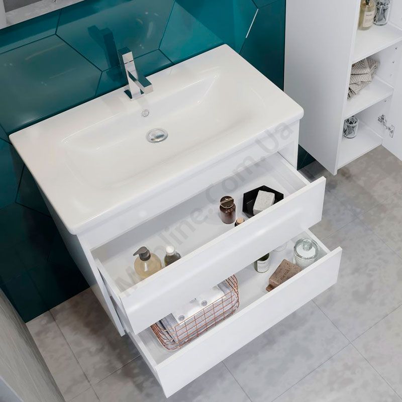 Навісна тумба для ванної з умивальником та висувними шухлядами.