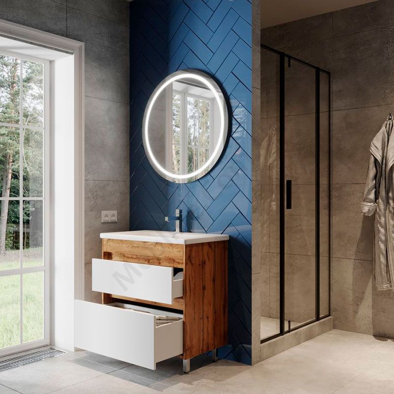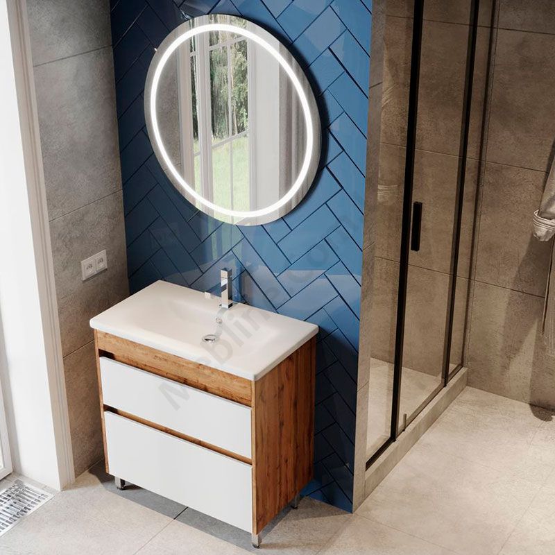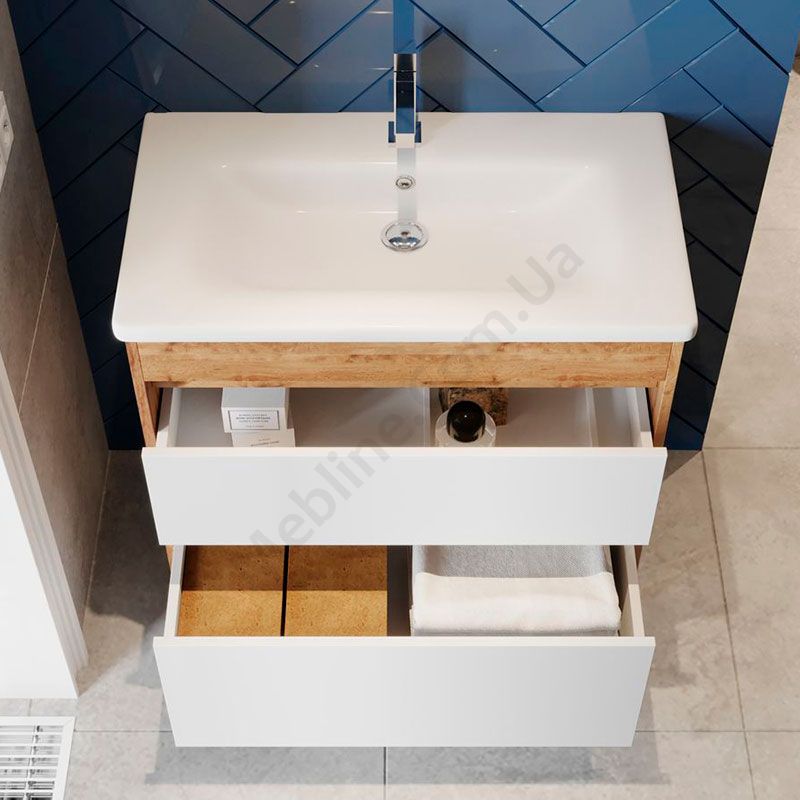 Тумба для ванної на ніжках з умивальником та висувними шухлядами.