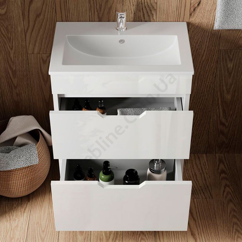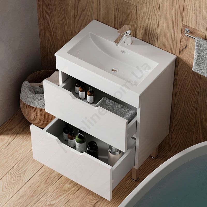 - Зовні тумба оздоблена глянцевою емаллю білого кольору.