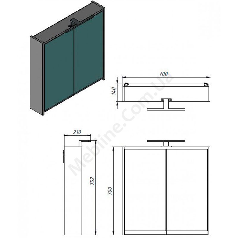 - Комплектується LED підсвічуванням, завширшки 300 мм.