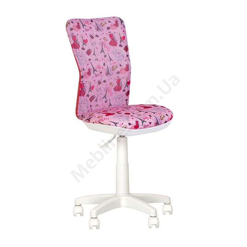 Дитяче поворотне крісло з високою дихаючою спинкою, без підлокітників, на білій пластиковій основі.