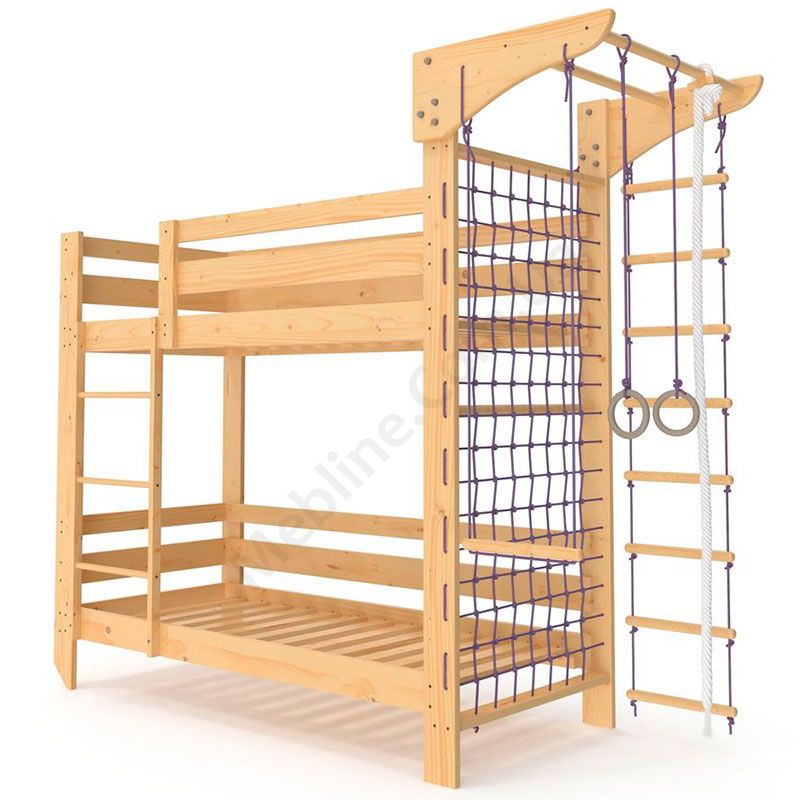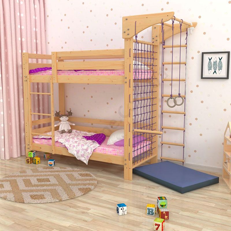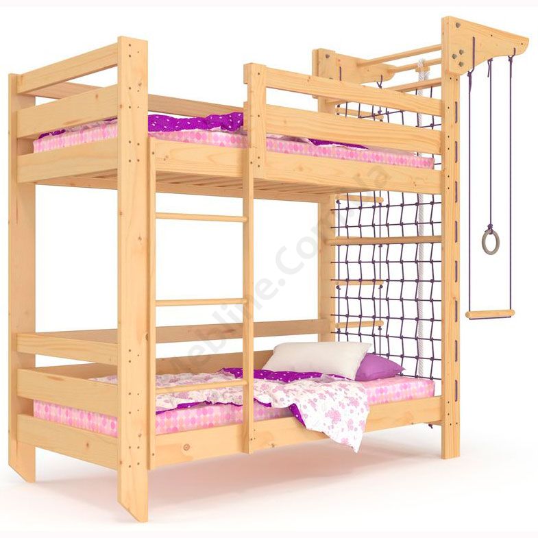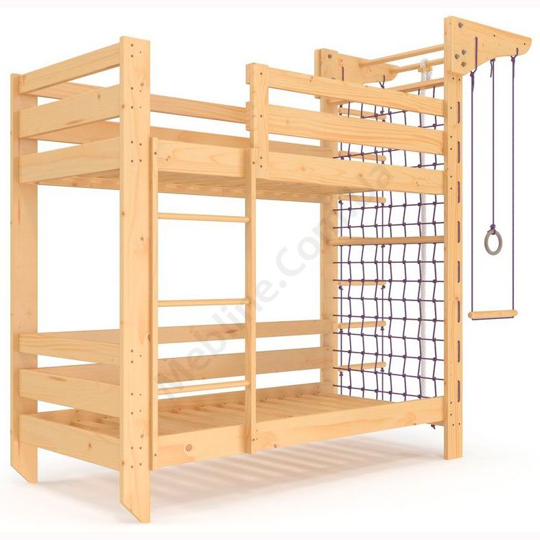 Дерев’яне двох’ярусне ліжко на ніжках зі спортивним куточком.