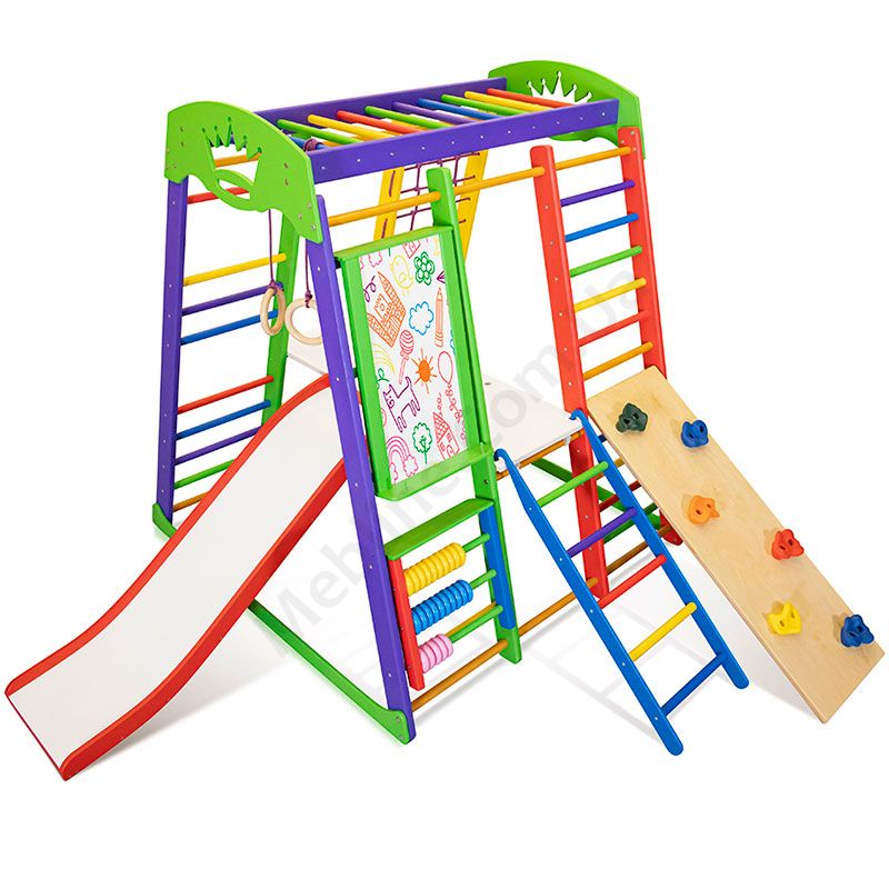 Дитячий спортивний комплекс для дому з гіркою, шведською стінкою, скалелазкою та мольбертом.