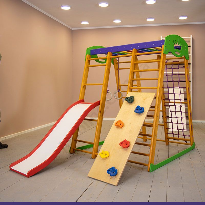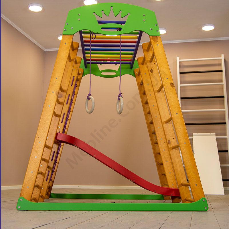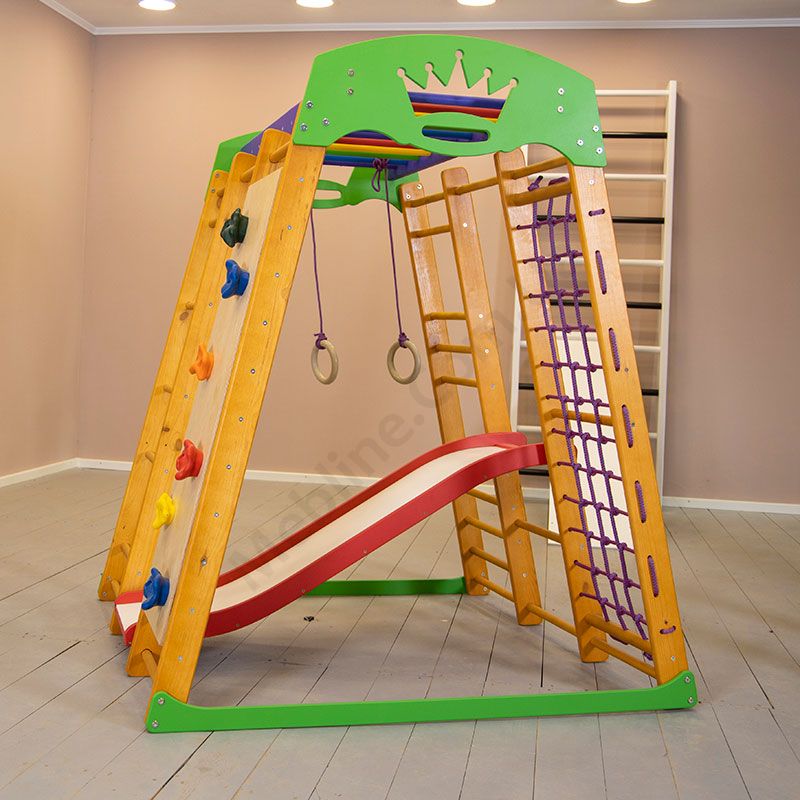 Дитячий спортивний комплекс для дому з гіркою, скелелазкою та шведською стінкою.