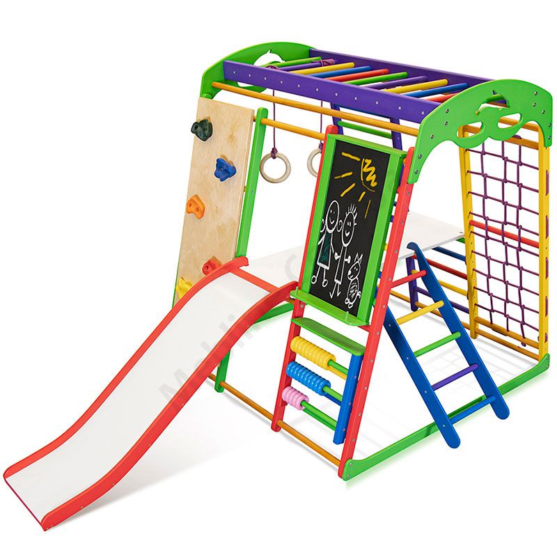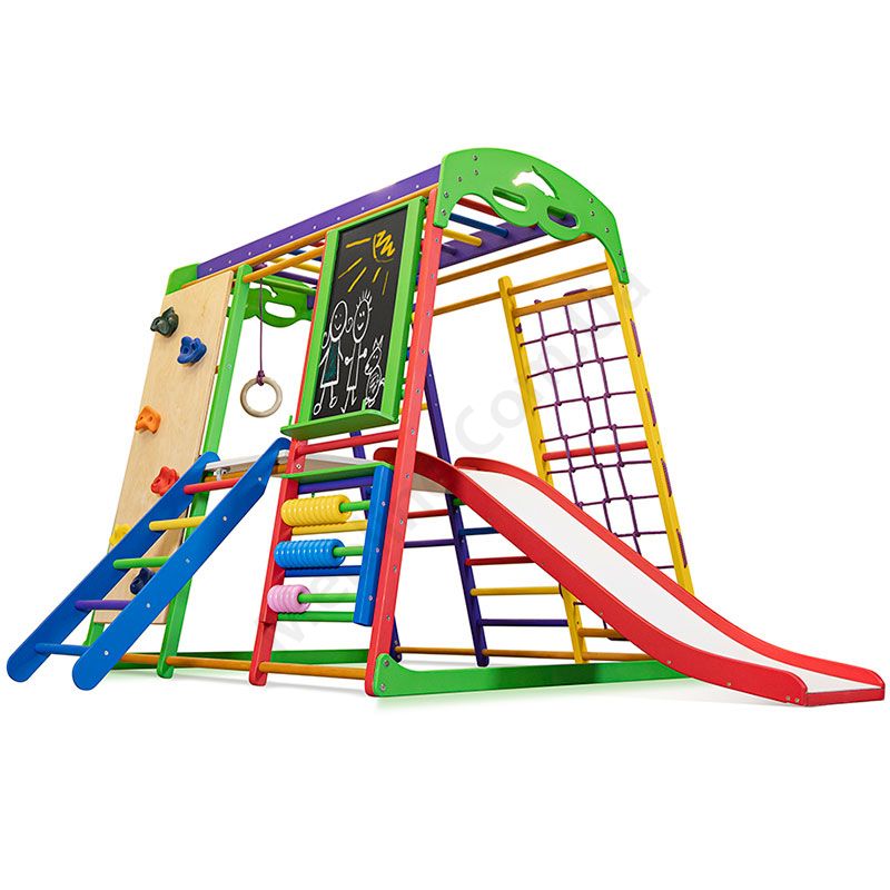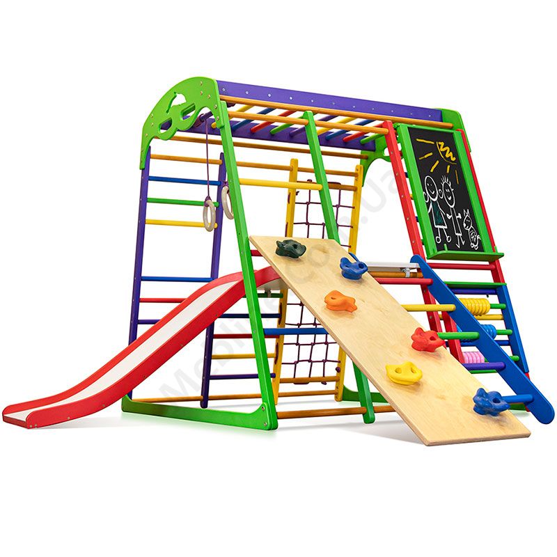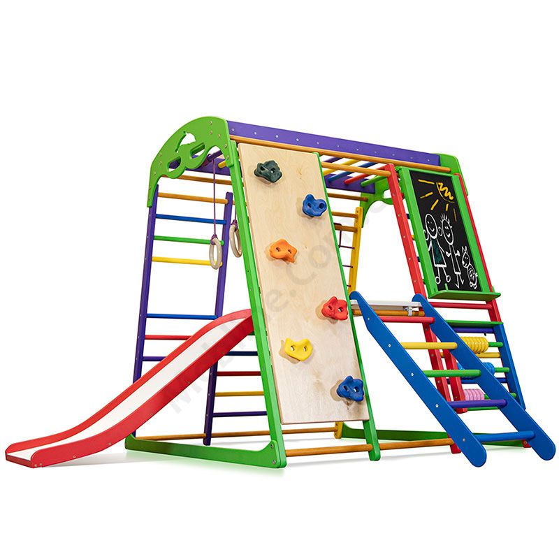 Дитячий спортивний комплекс для дому з гіркою, скелелазкою та шведською стінкою.
