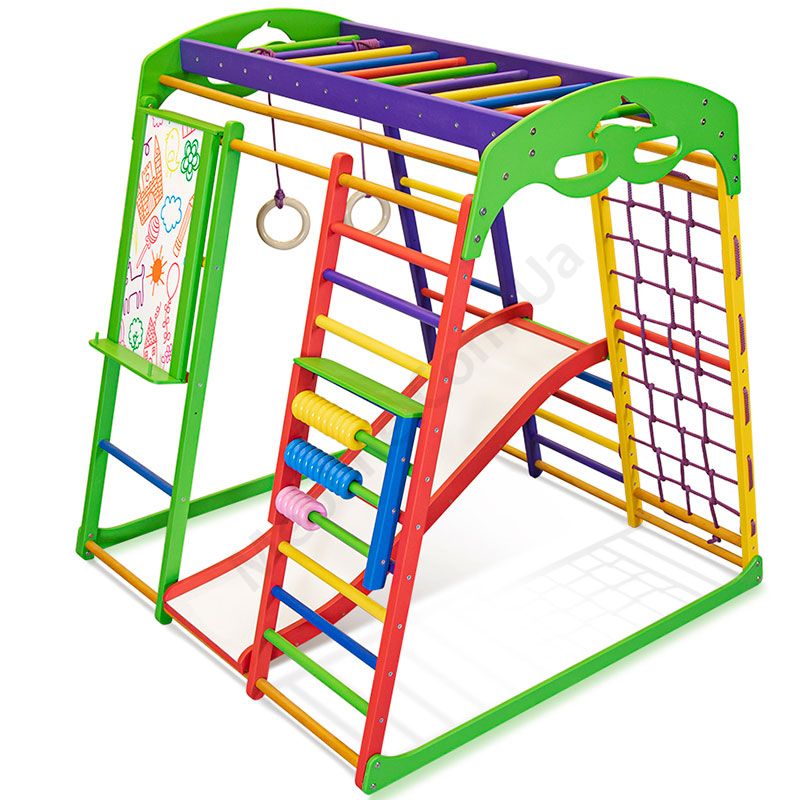 Дитячий спортивний комплекс для дому з гіркою, мольбертом та шведською стінкою.