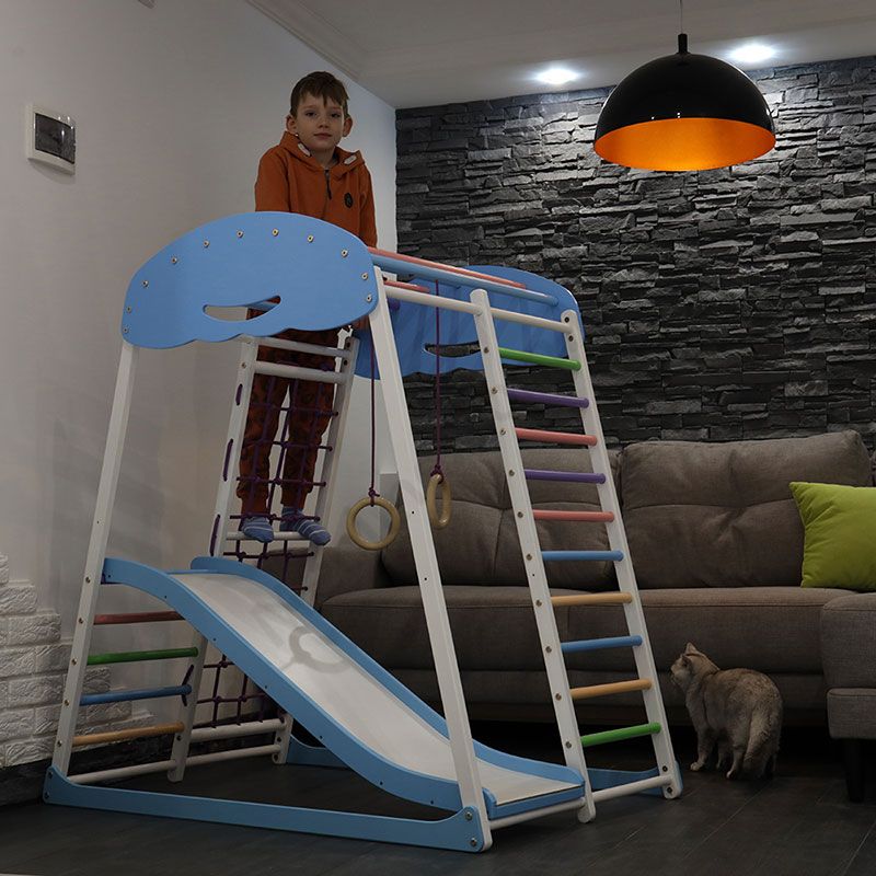 Дитячий спортивний комплекс для дому з гіркою та лазалками.