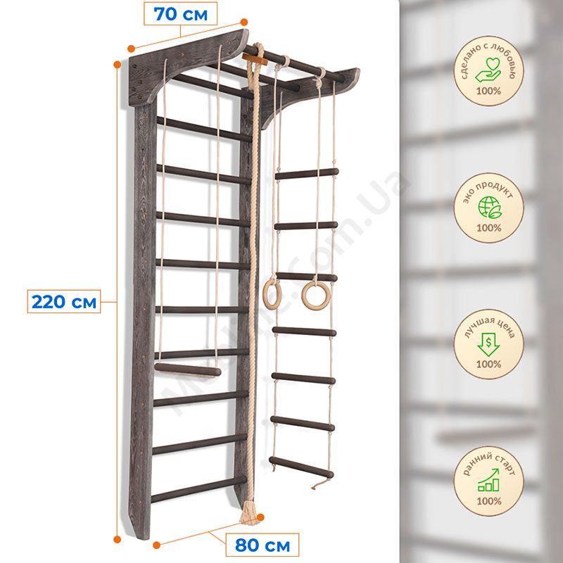 Шведська стінка з турніком, канатом та мотузковою драбиною.