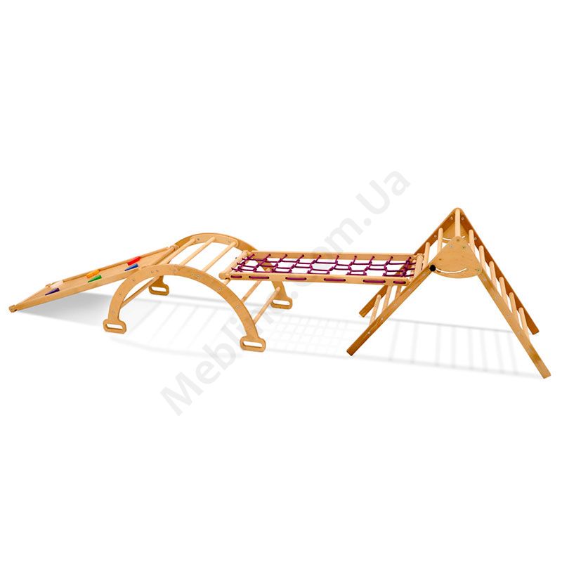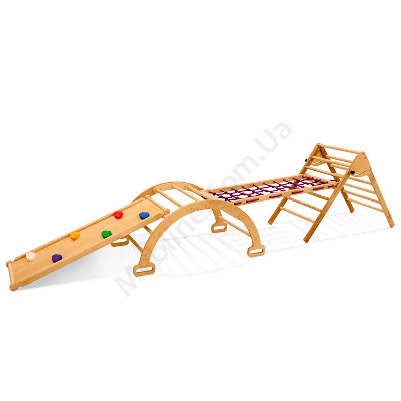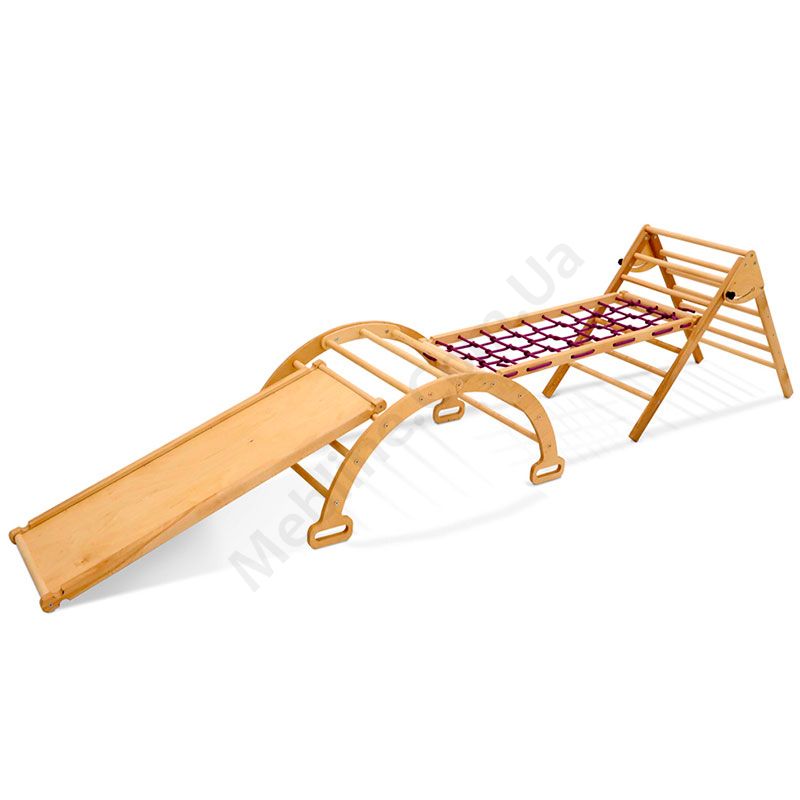 Дерев’яна спортивна арка з гіркою, сіткою та пірамідою.