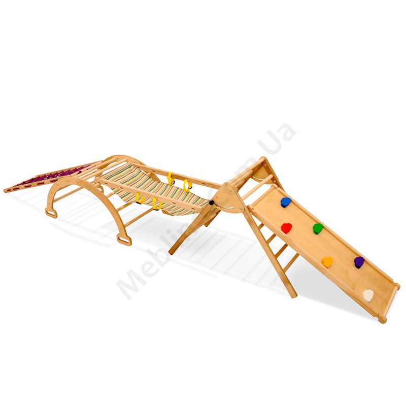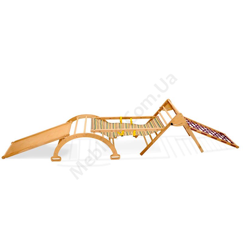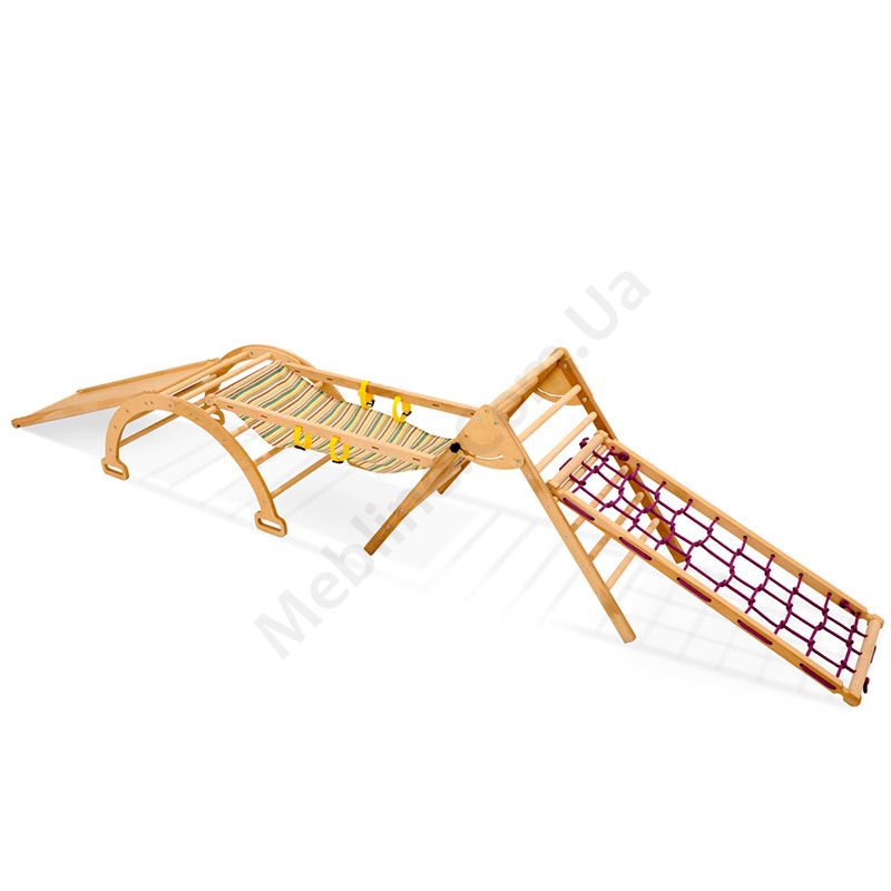Дерев’яна спортивна арка з гіркою, сіткою, гамаком та пірамідою.