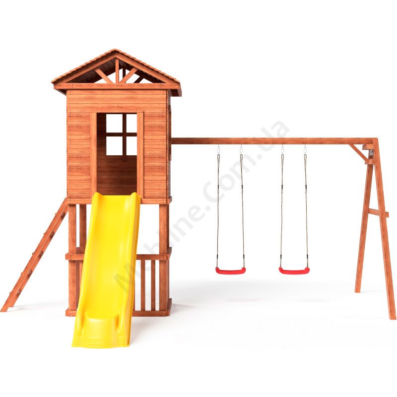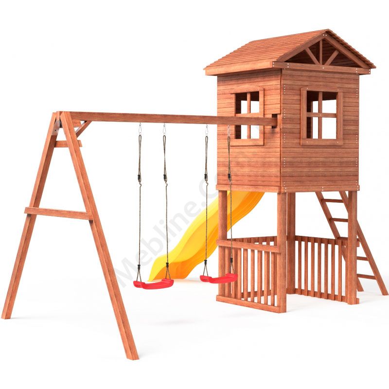 Дитячий ігровий комплекс для вулиці з гіркою, гойдалками та будиночком.