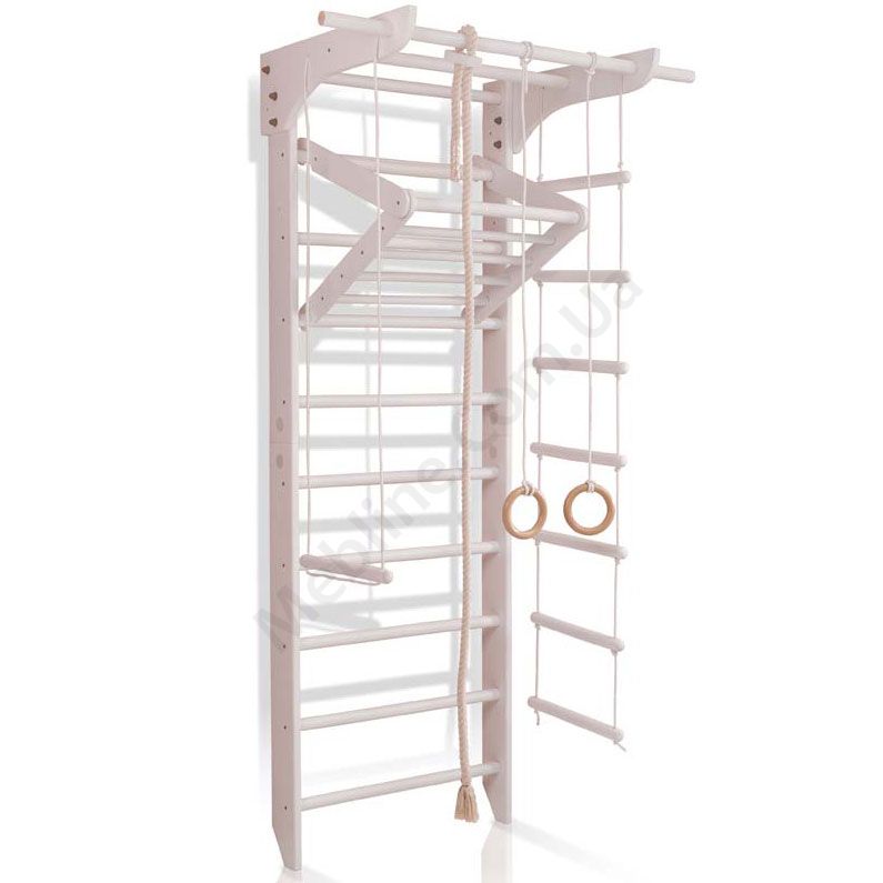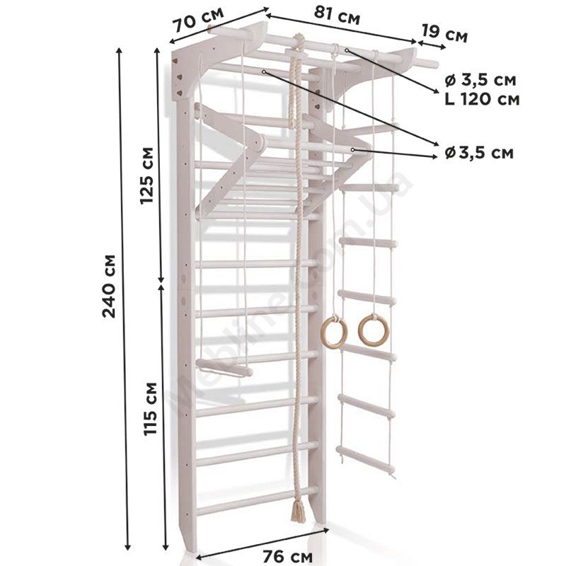 Дерев’яна шведська стінка з турніком, трапецією та драбиною.