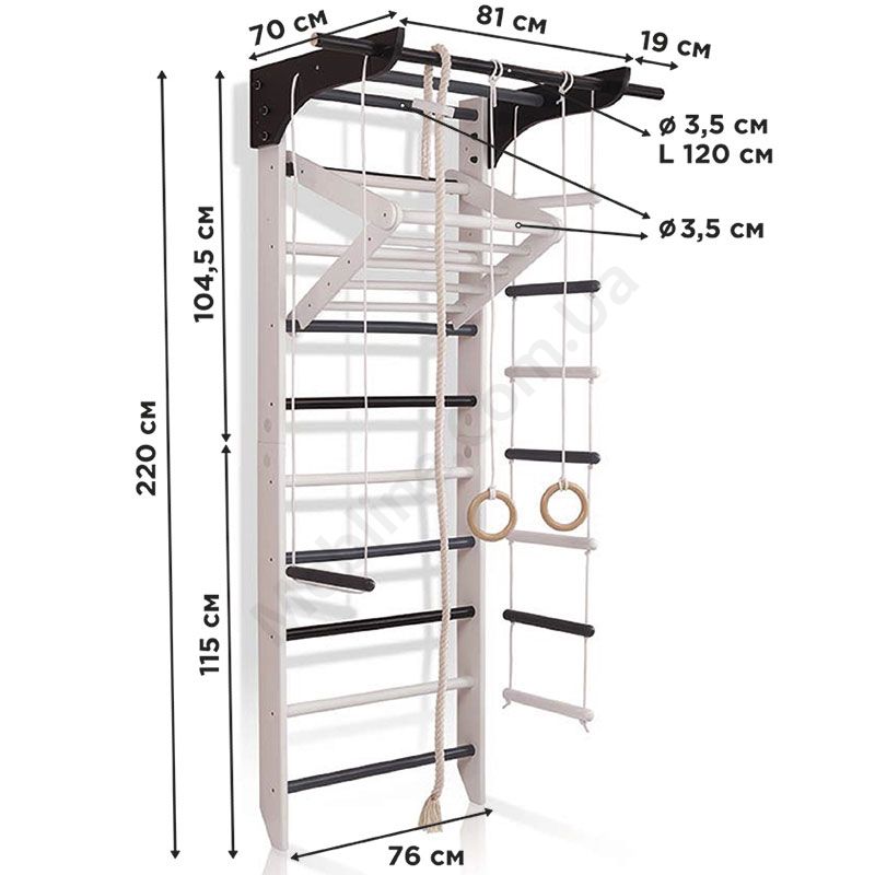 Дерев’яна шведська стінка з турніком, трапецією та драбиною.