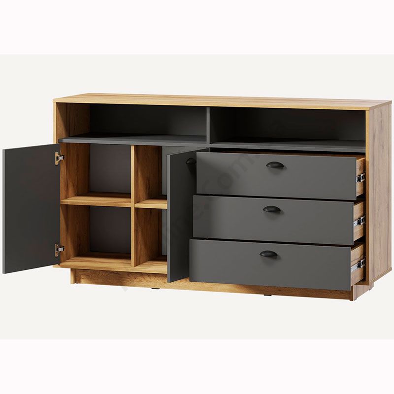 Комод з висувними шухлядами, дверцятами та полицями.