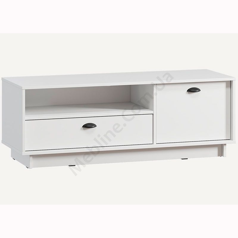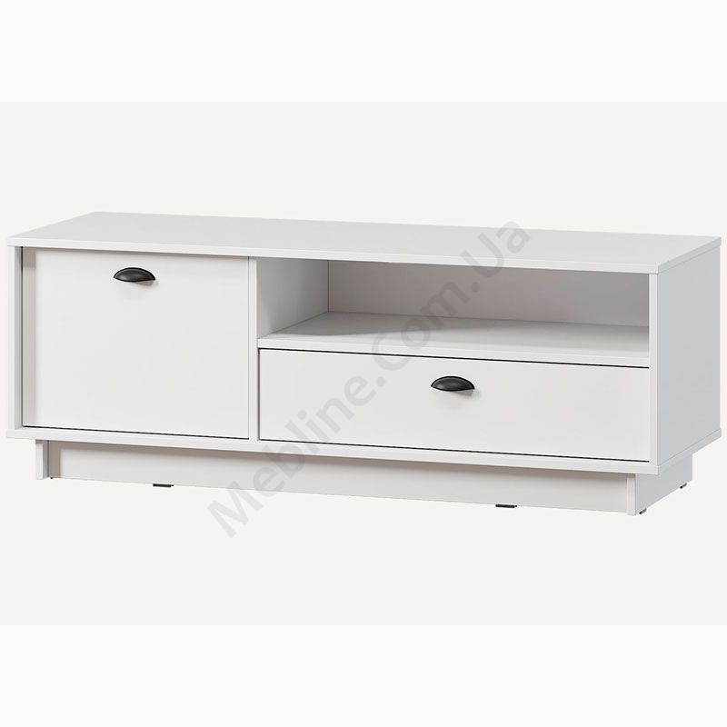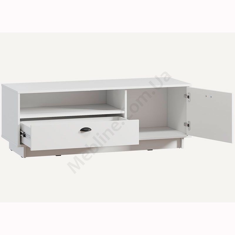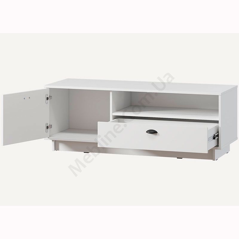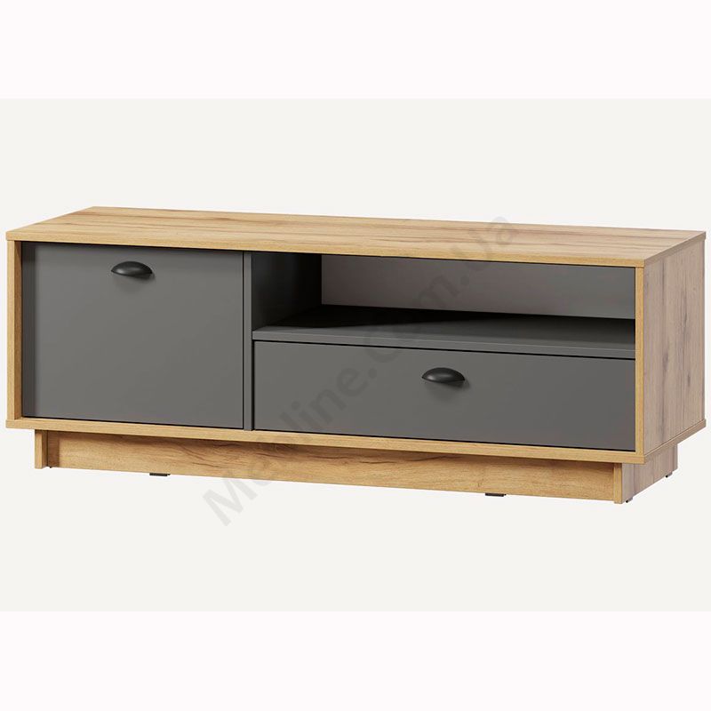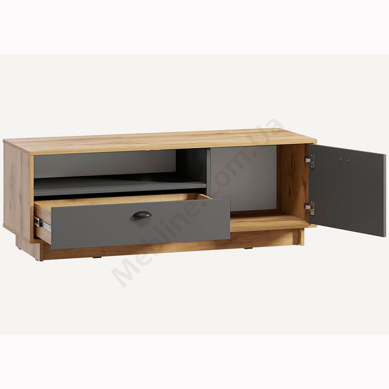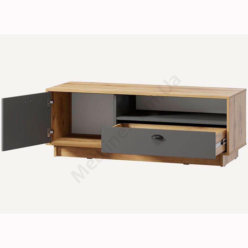 Тумба під телевізор з висувною шухлядою, дверцятами та полицею.