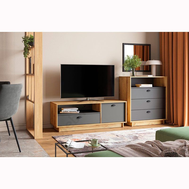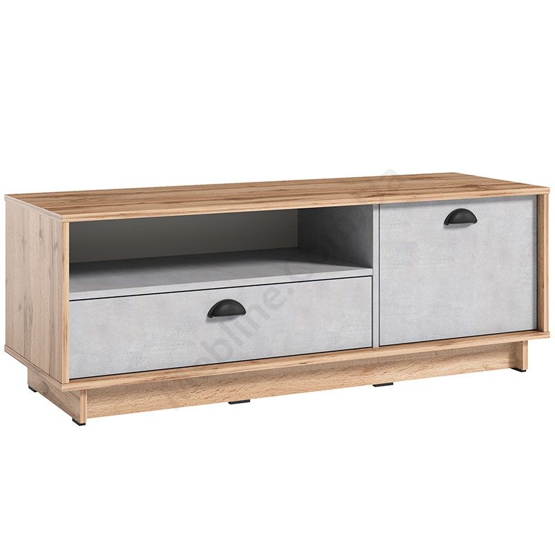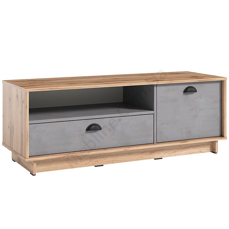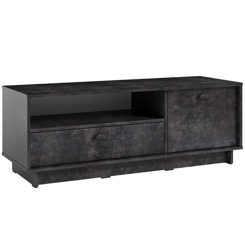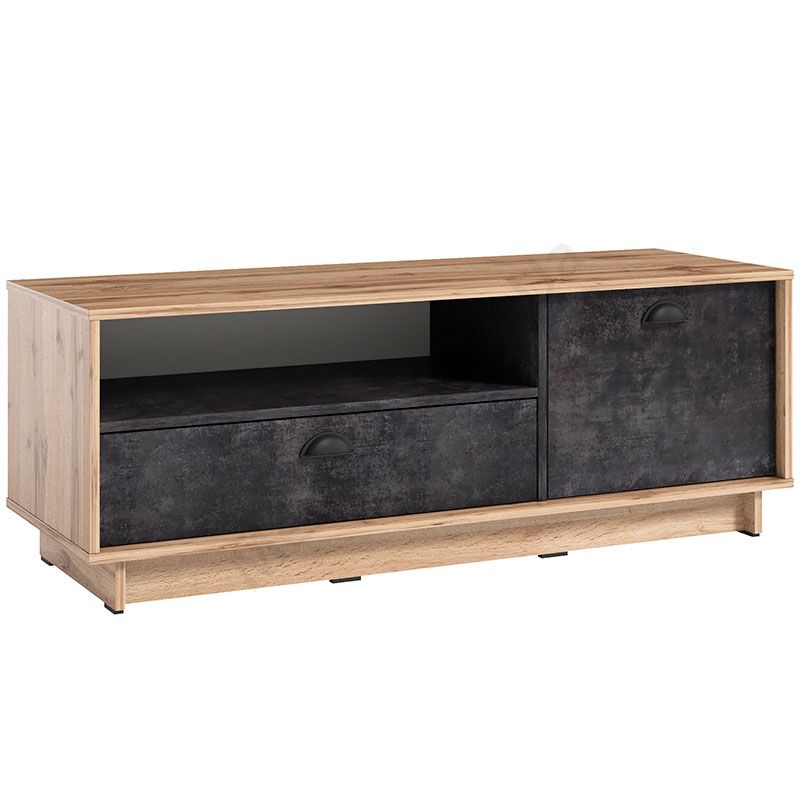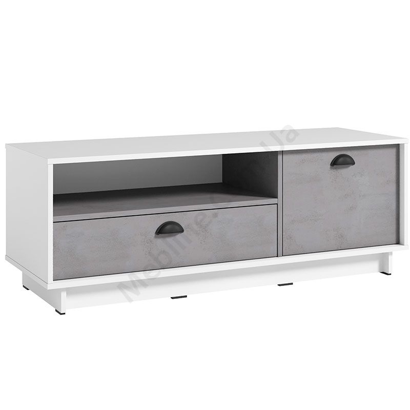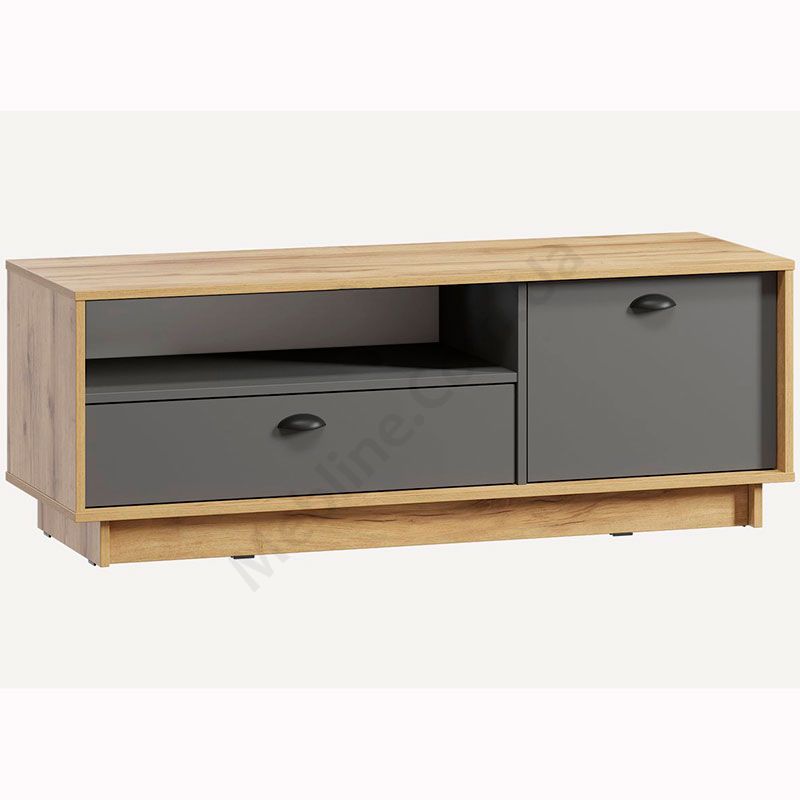 Тумба під телевізор з висувною шухлядою, дверцятами та полицею.