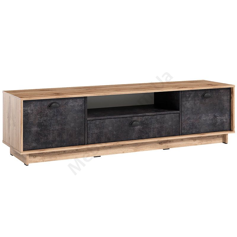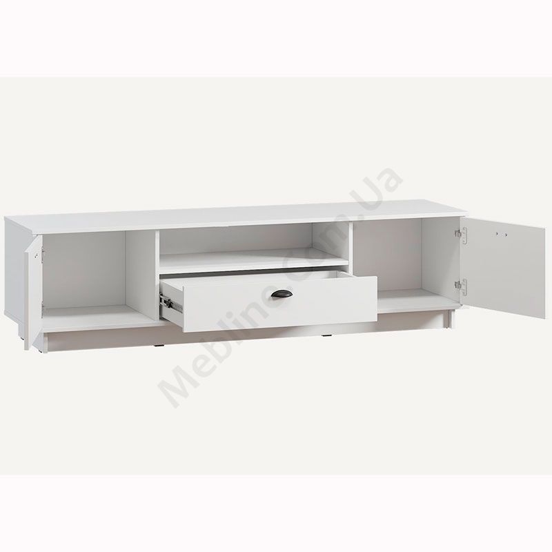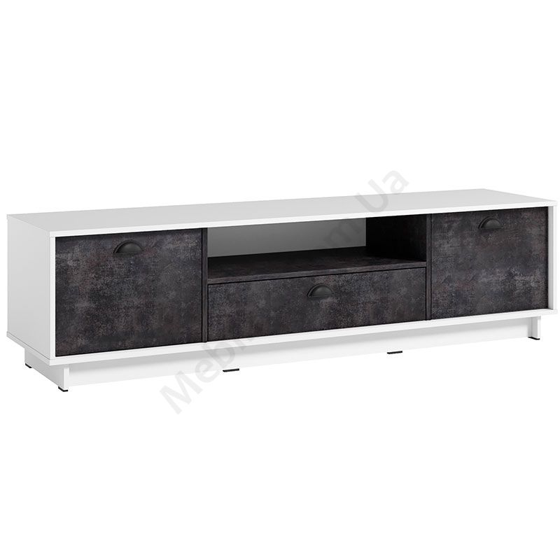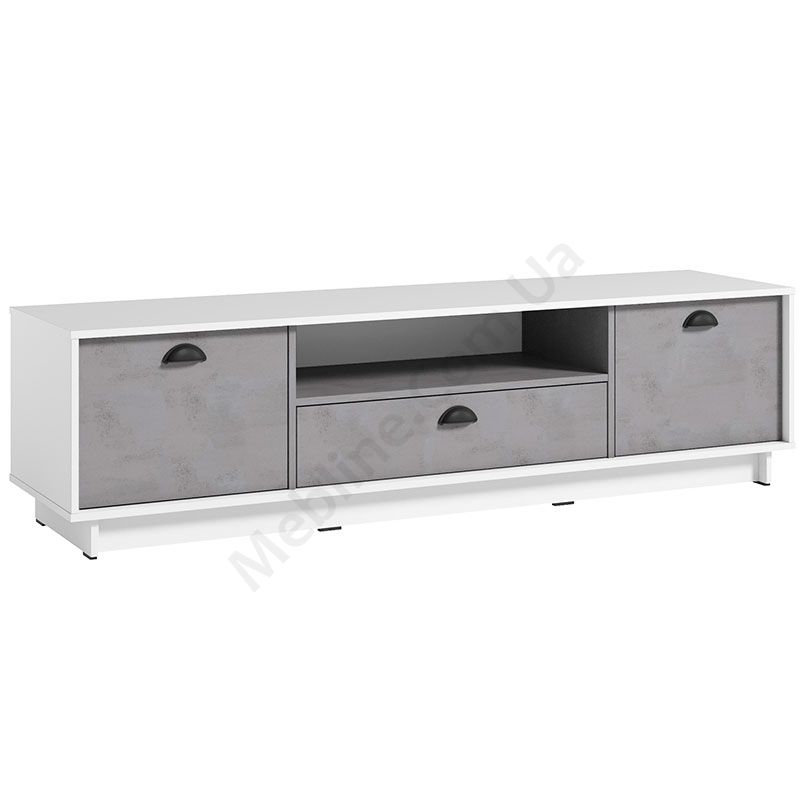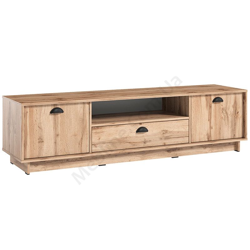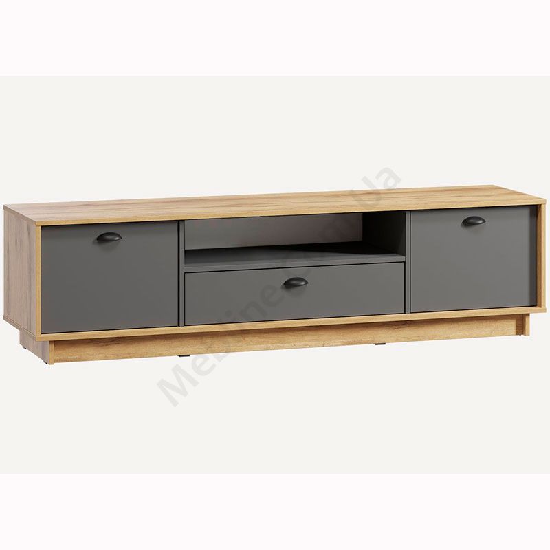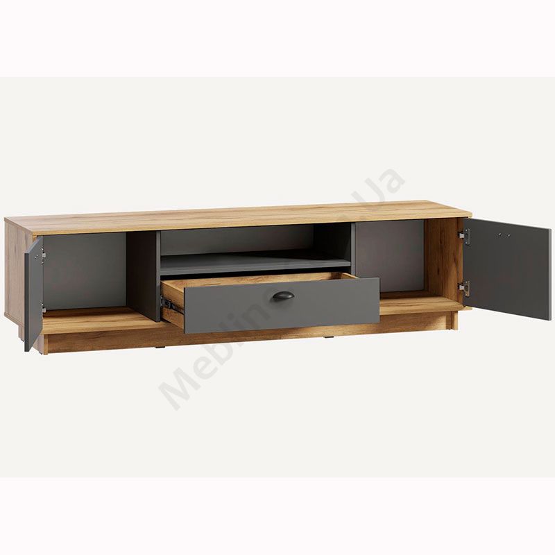 Тумба під телевізор з висувною шухлядою, дверцятами та полицею.