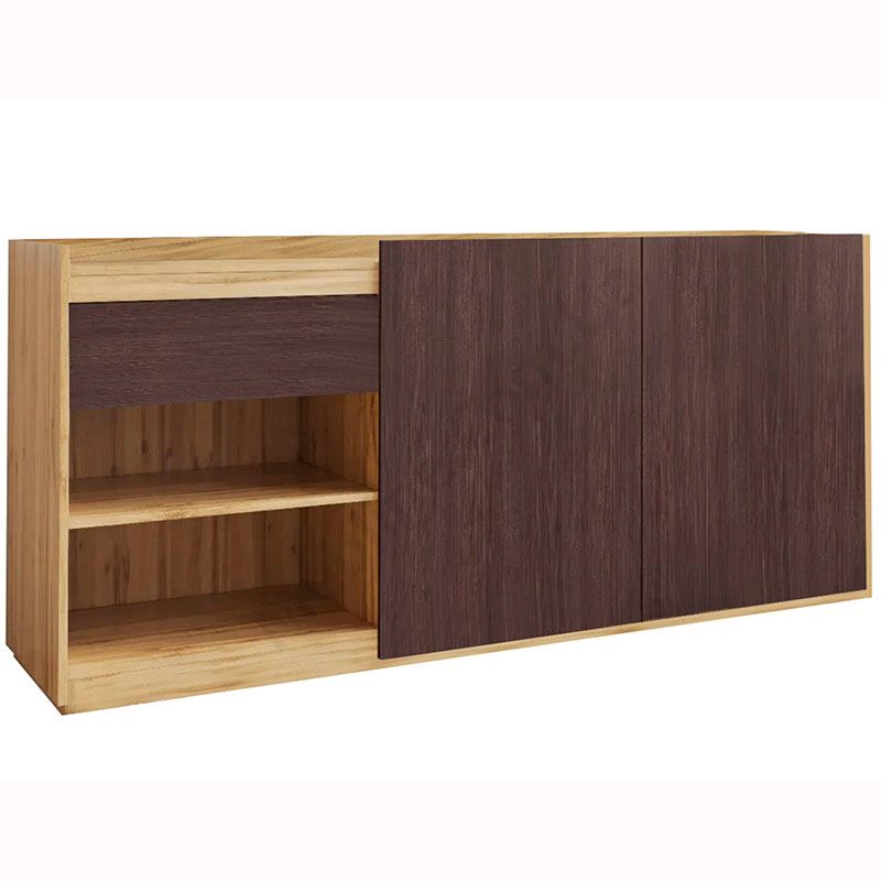 Комод з дверцятами, відкритими полицями та висувною шухлядою.