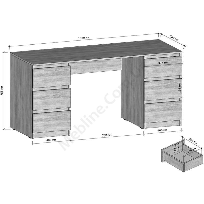 - Має шість висувних шухляд.