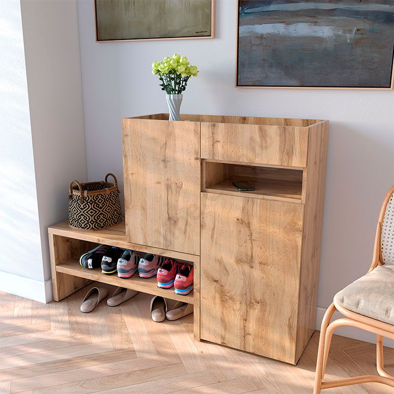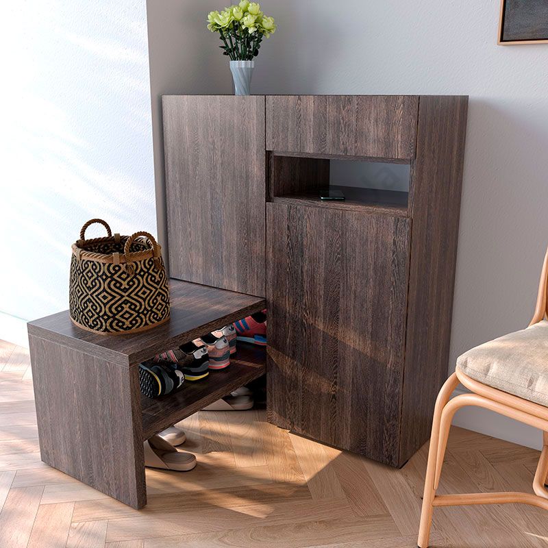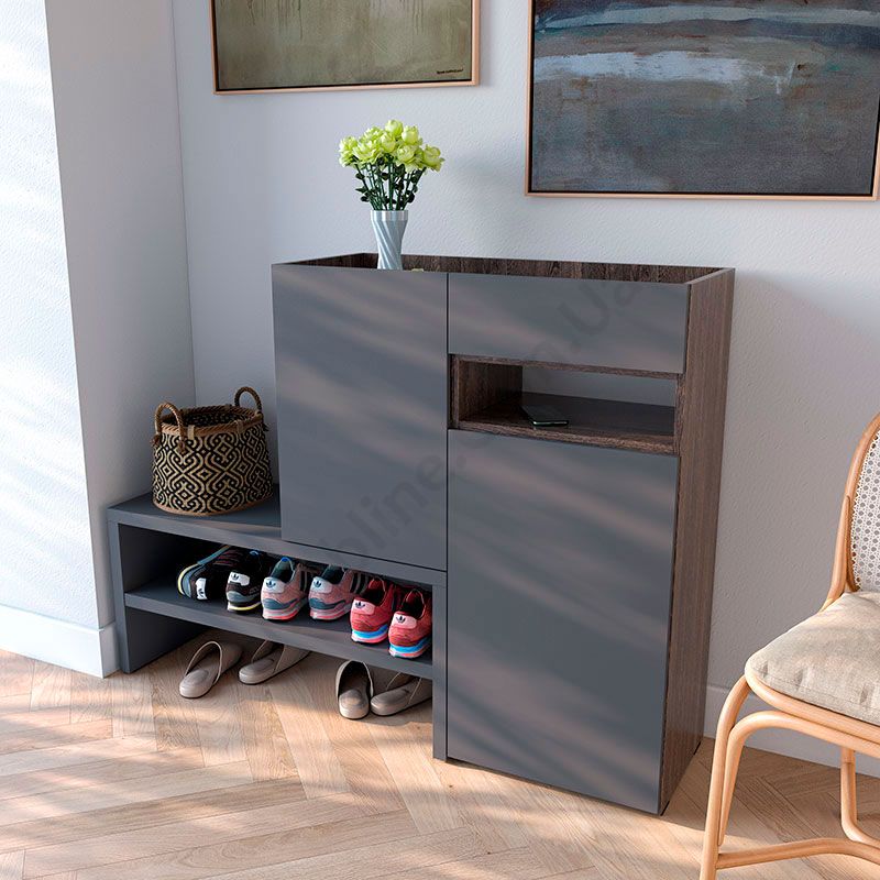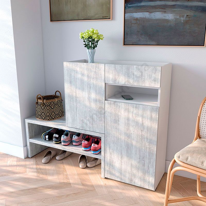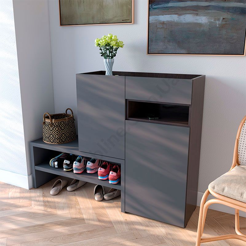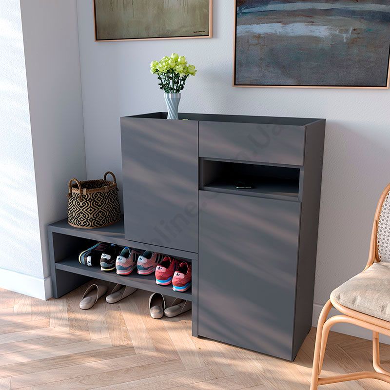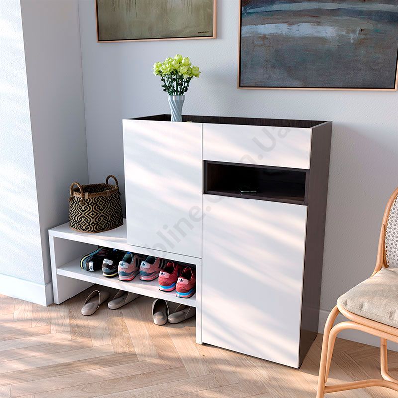 Тумба для взуття з приставкою, дверцятами та висувною шухлядою.