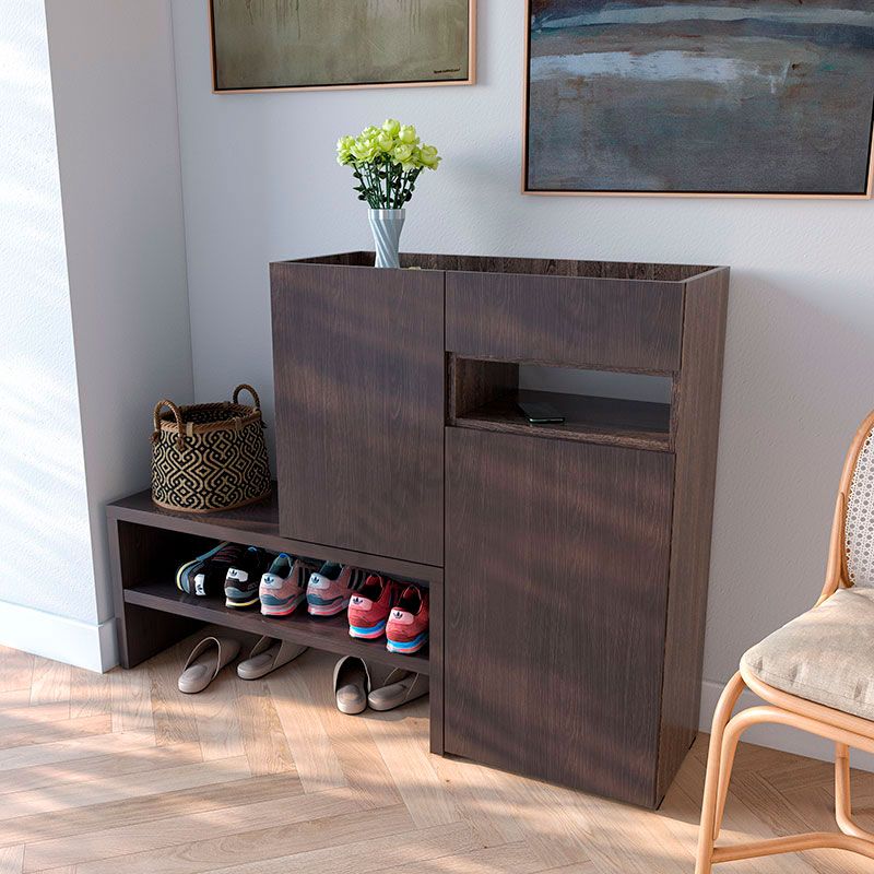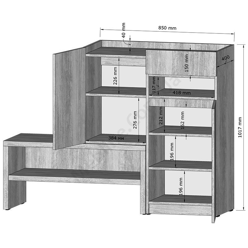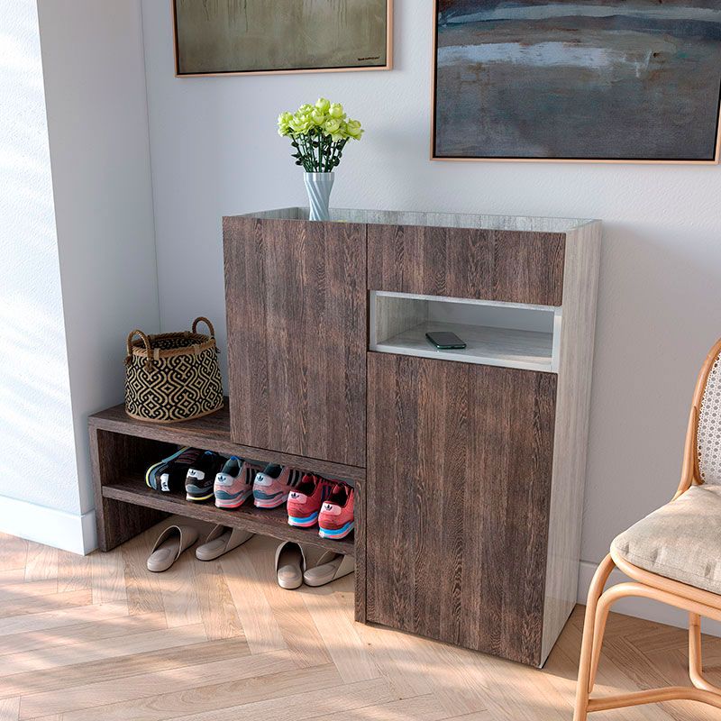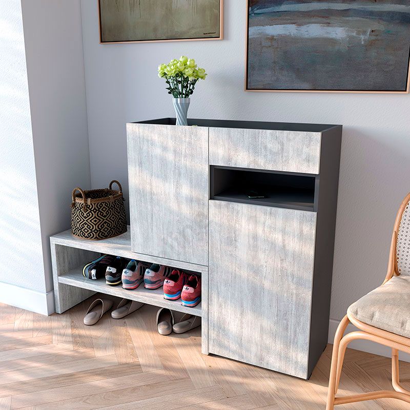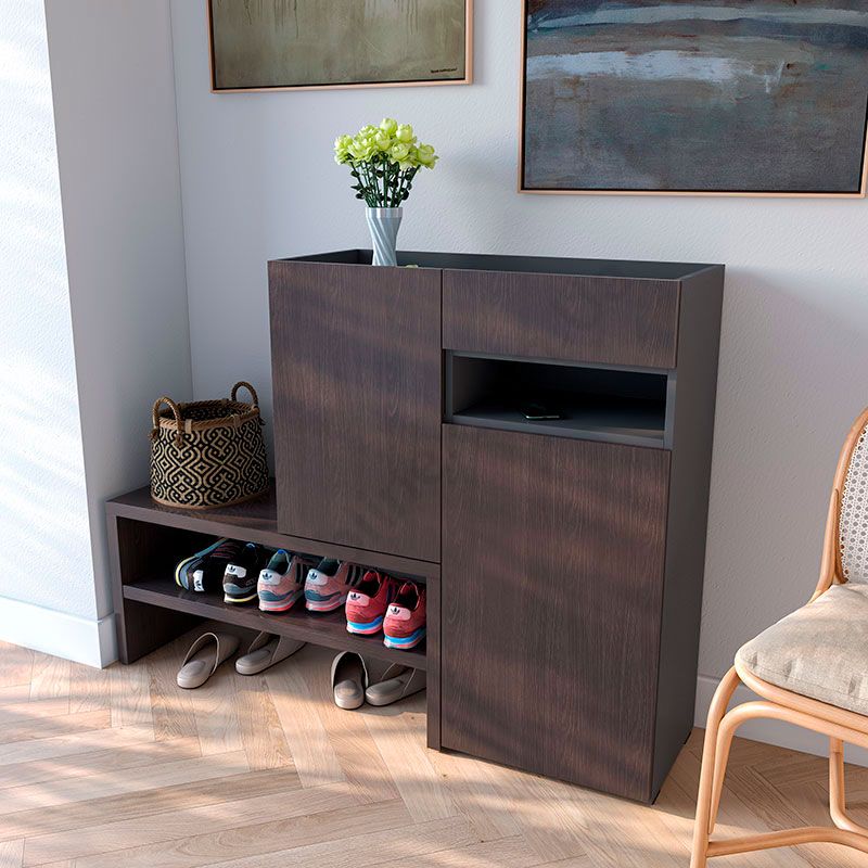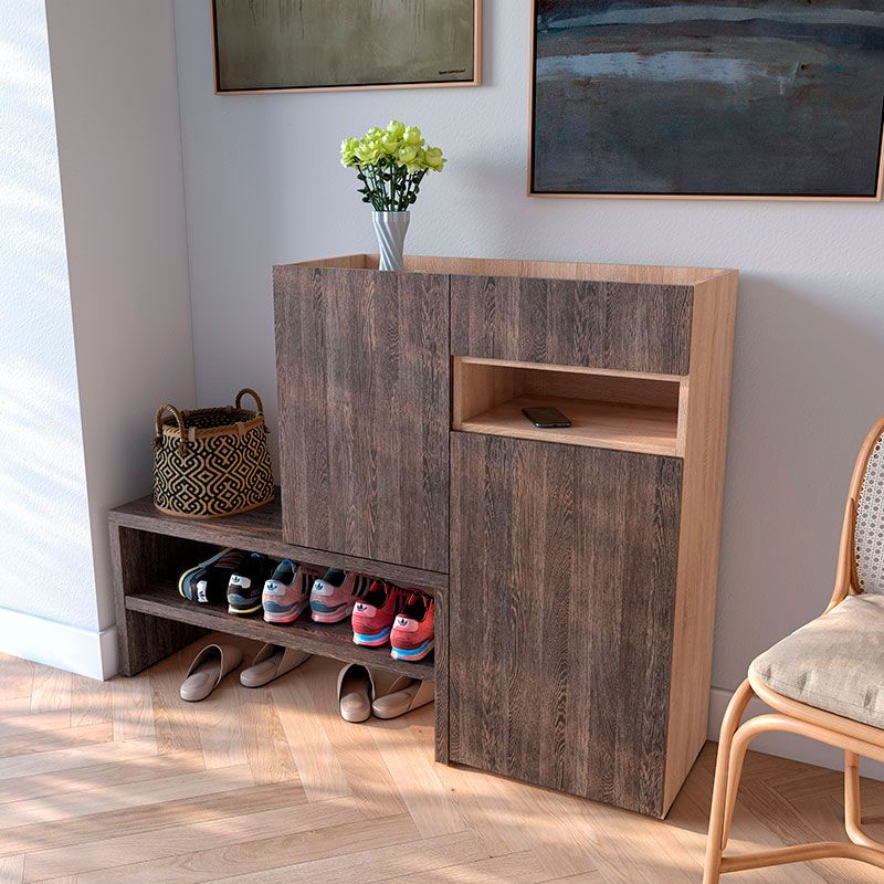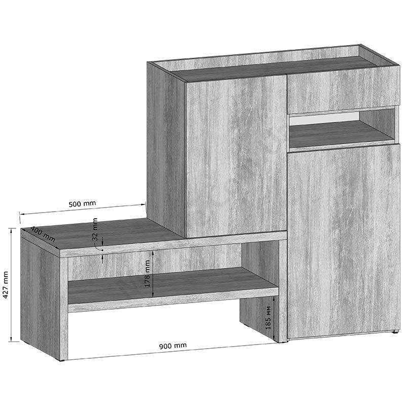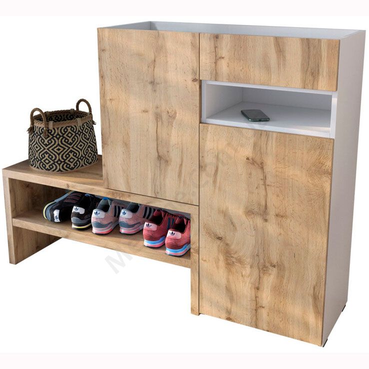 Тумба для взуття з приставкою, дверцятами та висувною шухлядою.