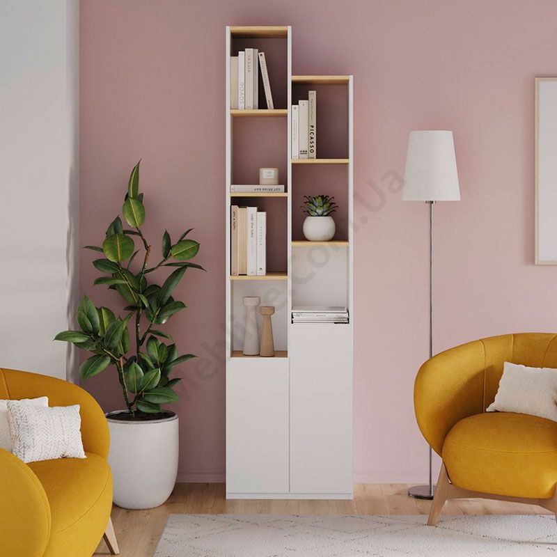 Стелаж з відкритими поличками та дверцятами.