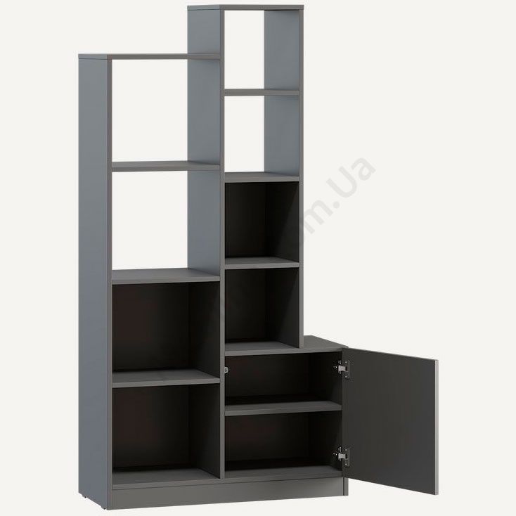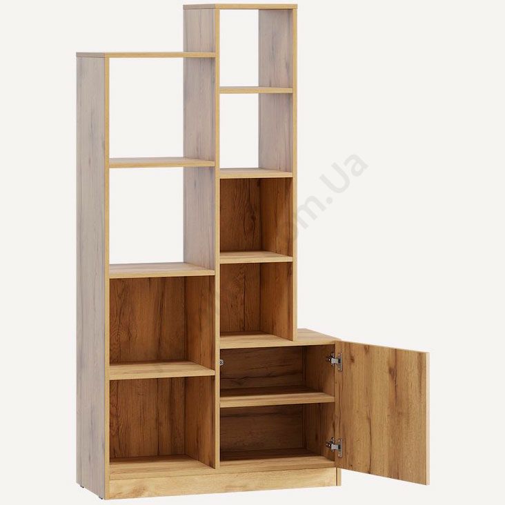 Стелаж з відкритими поличками та дверцятами.