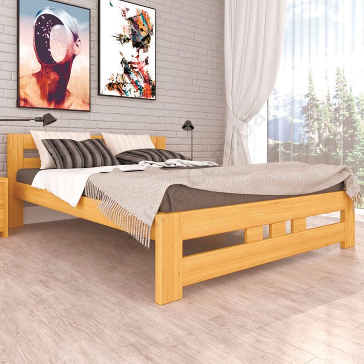 Елегантне дерев’яне ліжко з прямим узголів’ям.