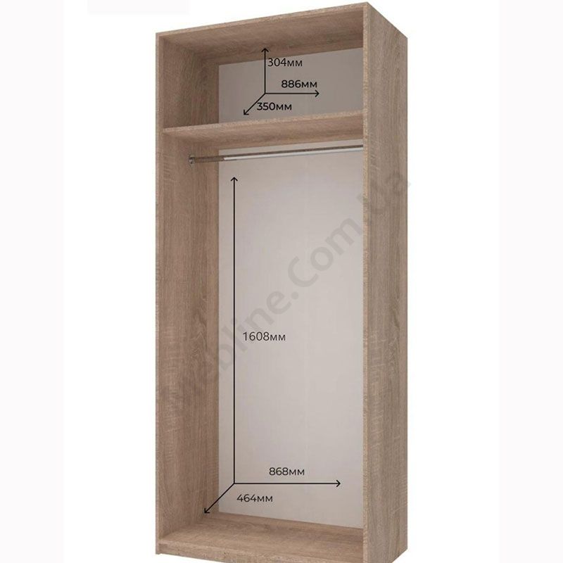 - За дверцятами штанга для одягу та верхня полиця.