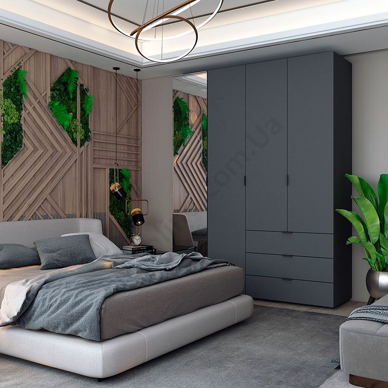Платтяна тридверна шафа з пеналом, дзеркалом та висувними шухлядами.