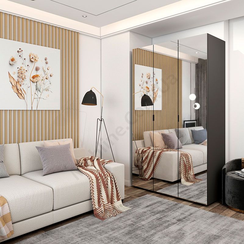 - Троє розпашних дверцят з дзеркалами.