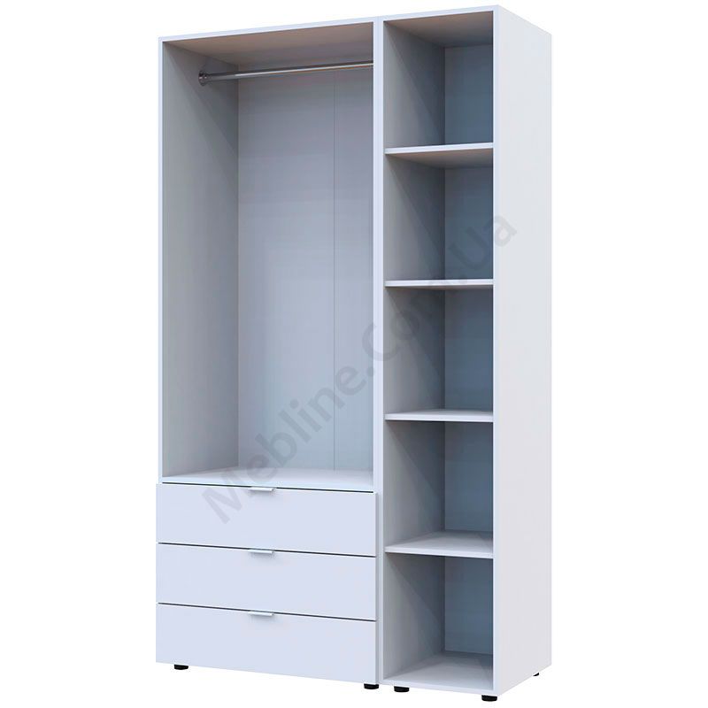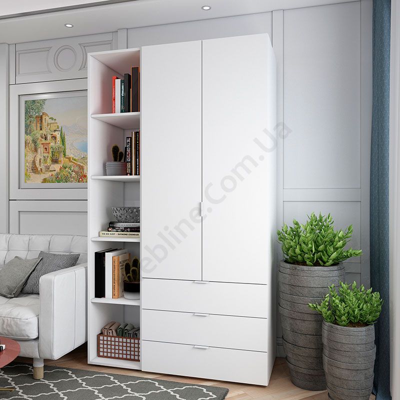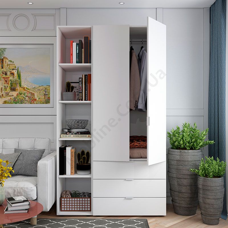 Дводверна шафа зі стелажем та висувними шухлядами.