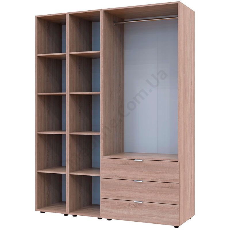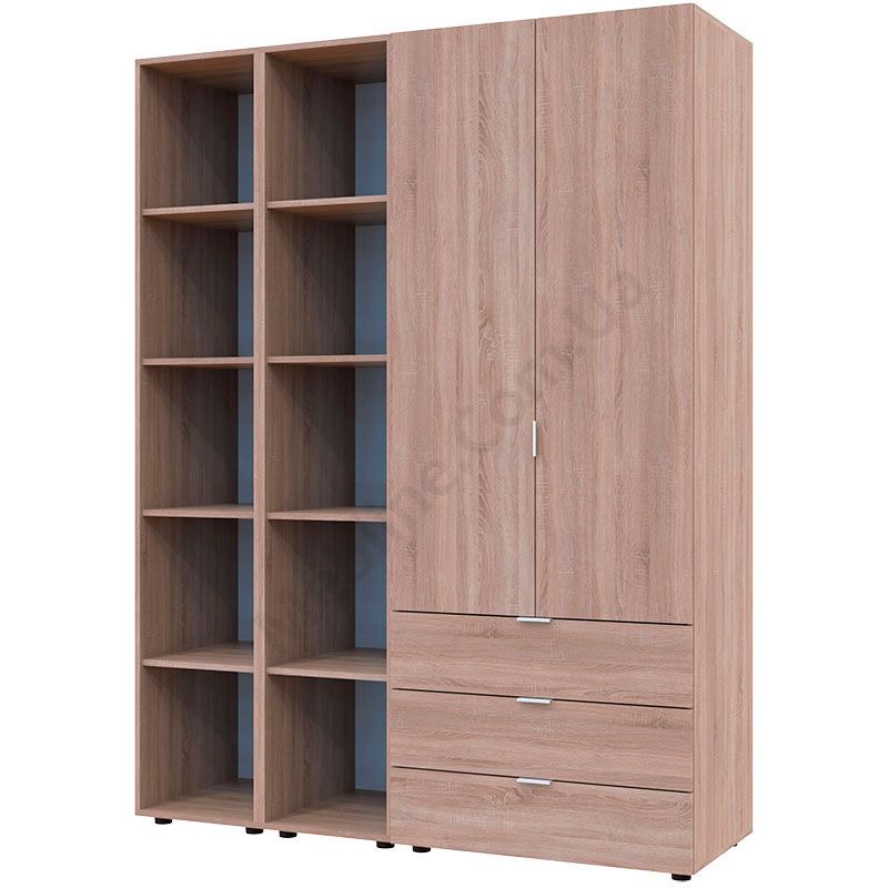 Дводверна шафа з двома стелажами та висувними шухлядами.