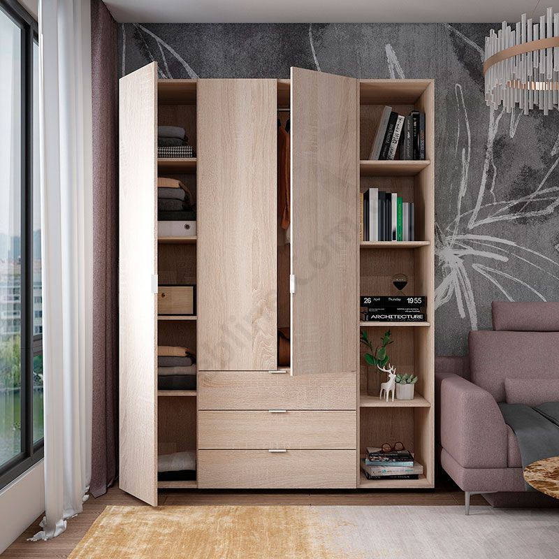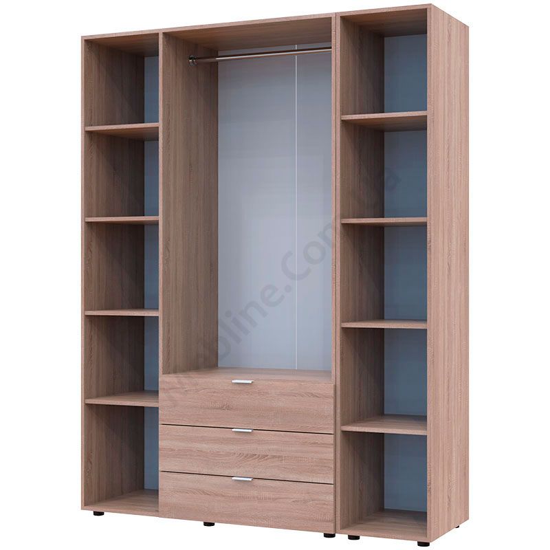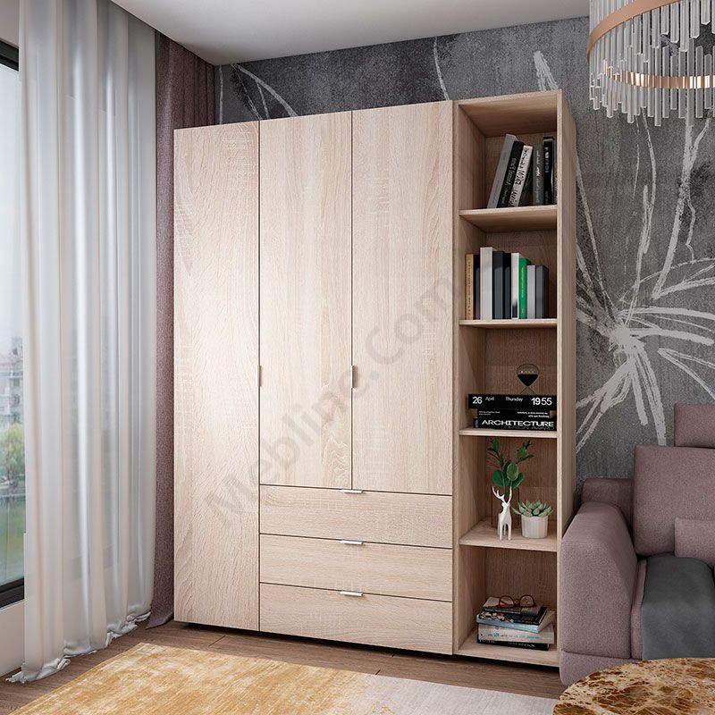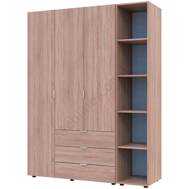 Тридверна шафа зі стелажем та висувними шухлядами.