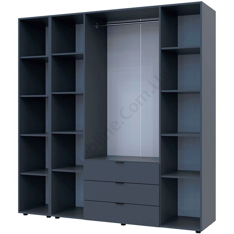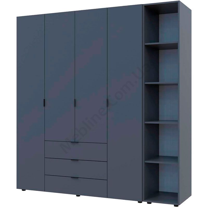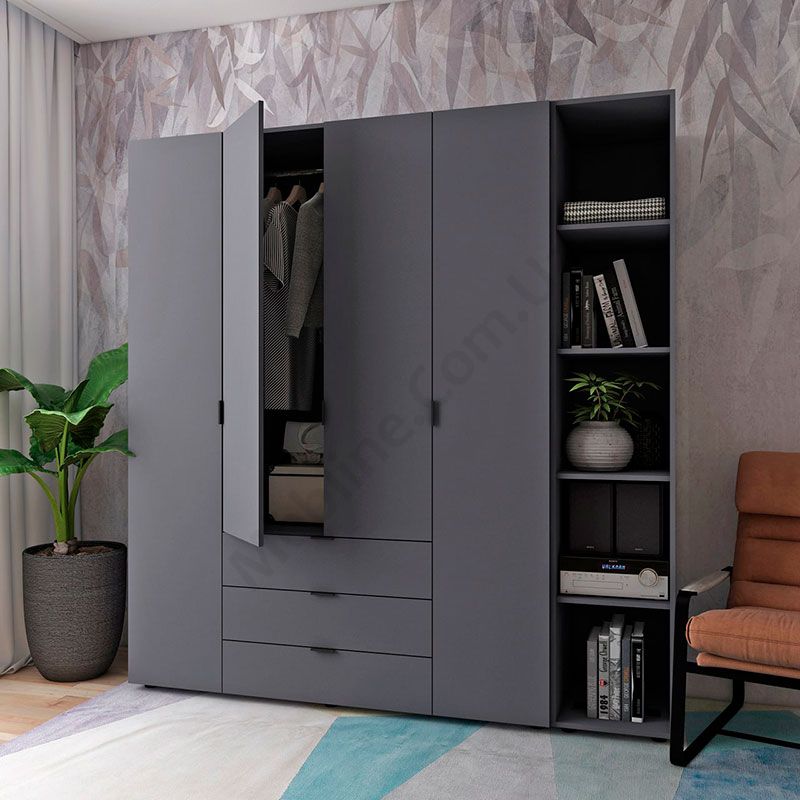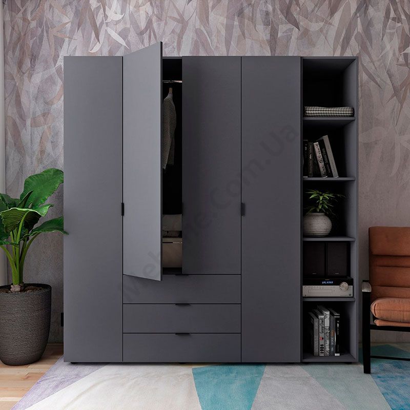 Чотиридверна шафа зі стелажем та висувними шухлядами.