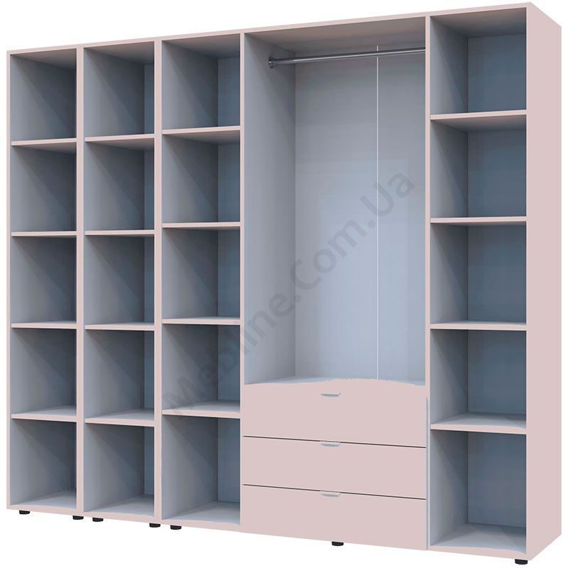 Чотиридверна шафа з двома стелажами та висувними шухлядами.