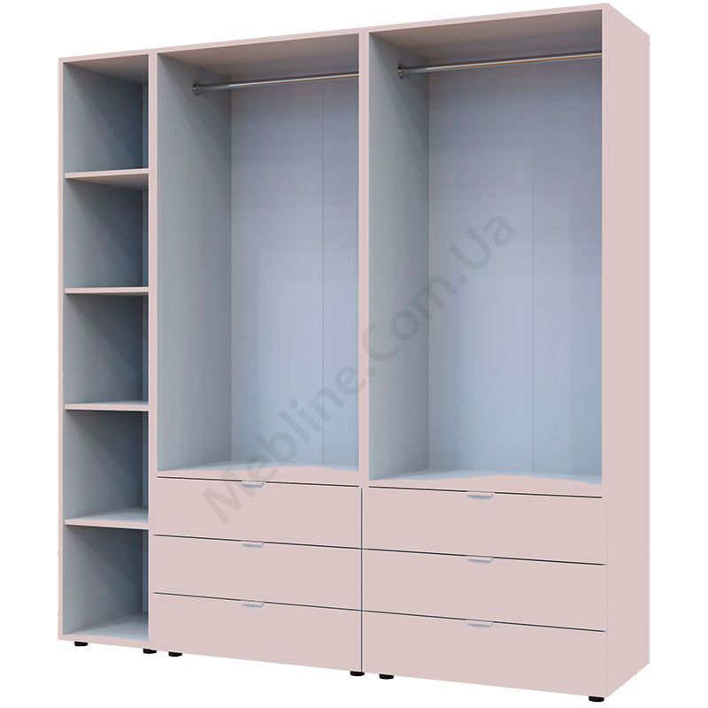 Дві дводверні шафи зі стелажем та висувними шухлядами.