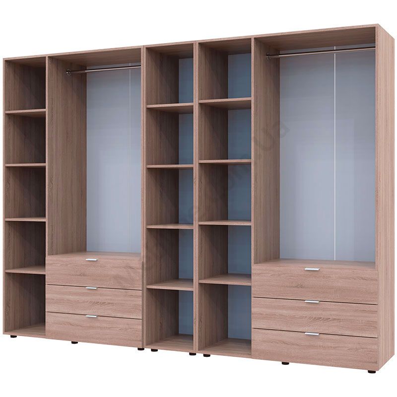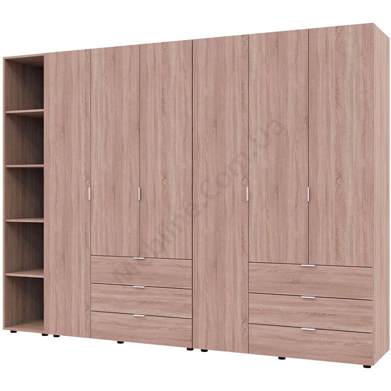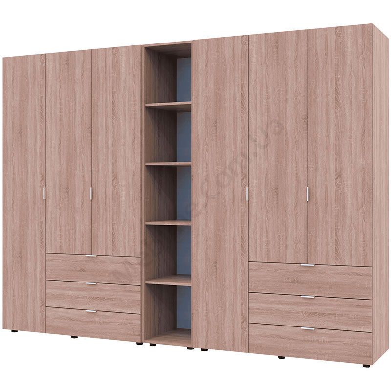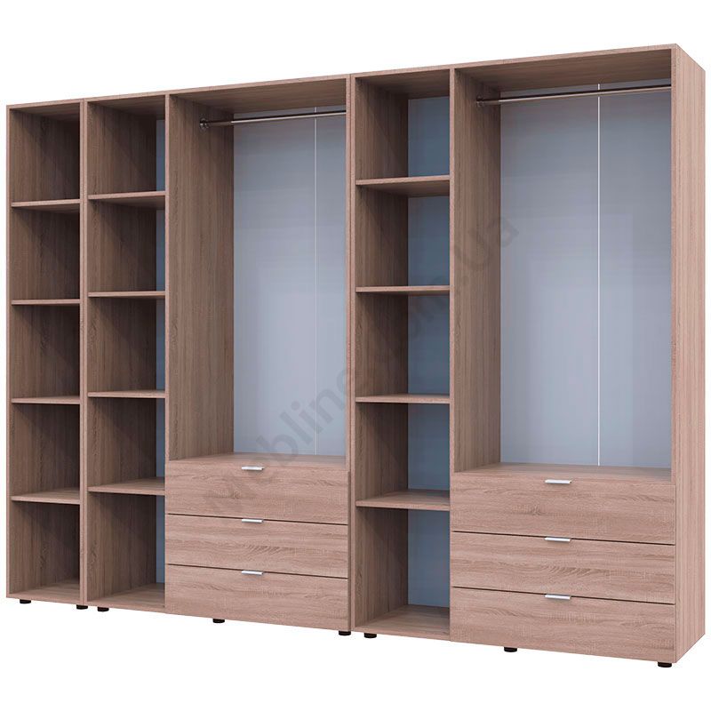 Дві тридверні шафи зі стелажем та висувними шухлядами.