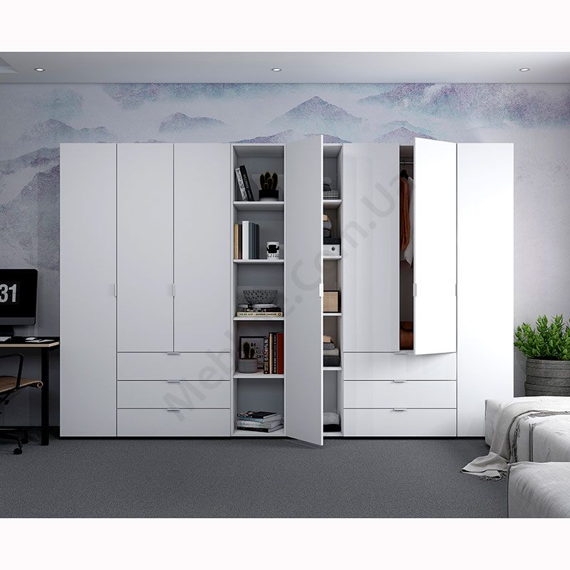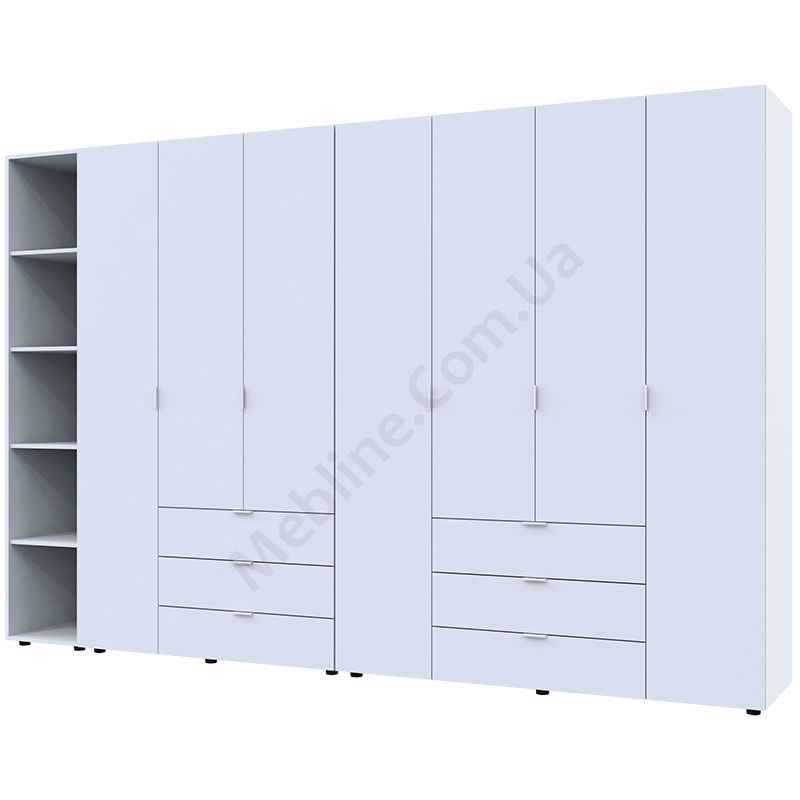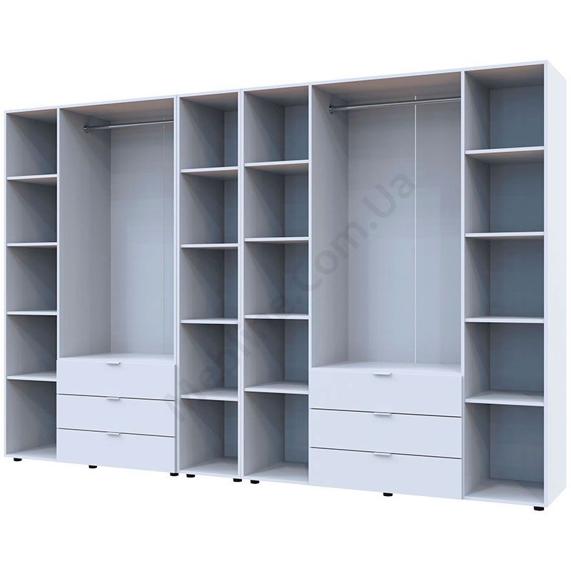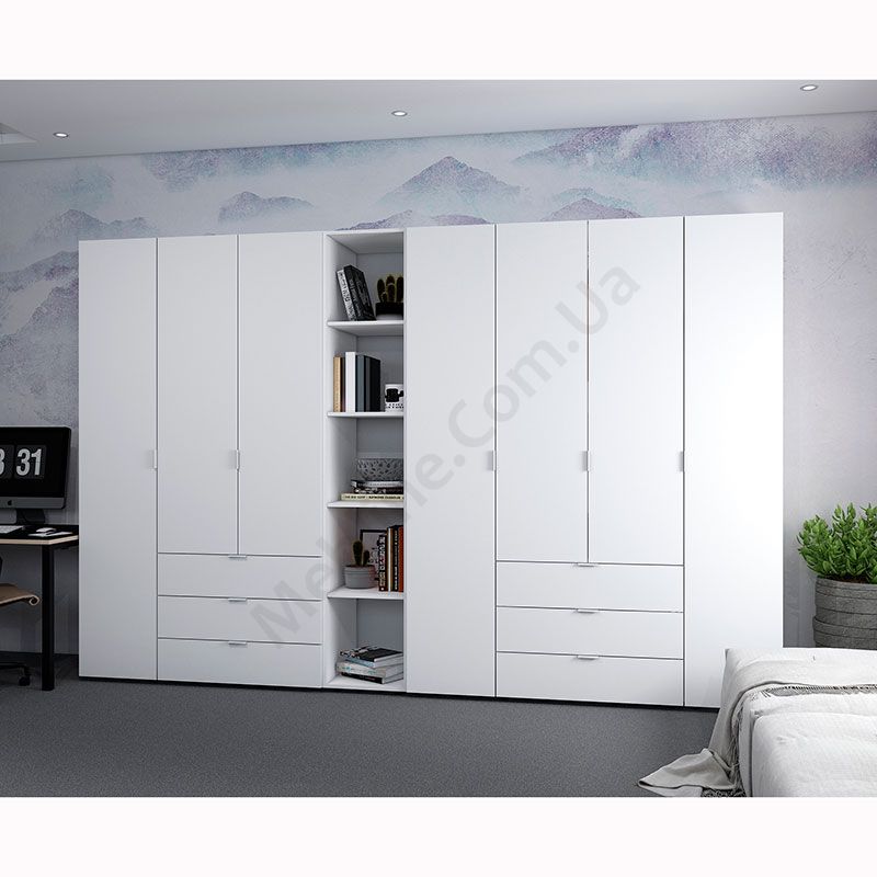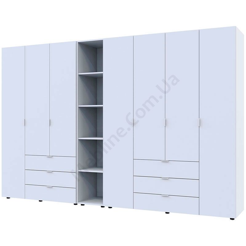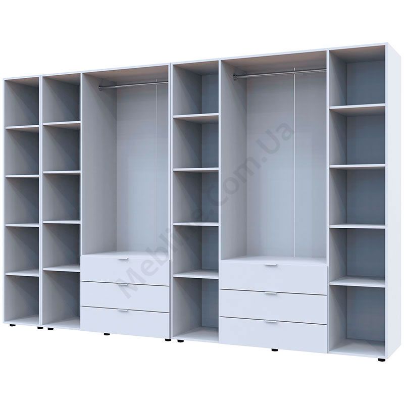 Чотиридверна та тридверна шафи зі стелажем та висувними шухлядами.